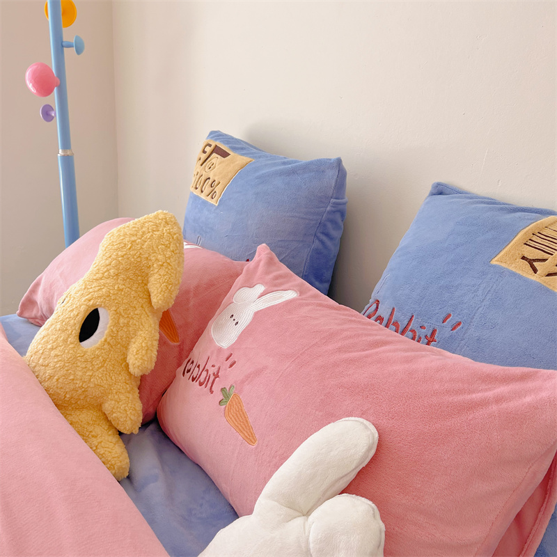 商品名称:星野 2023秋冬高克重牛奶绒贴布绣多巴胺系列四件套 萌兜兜