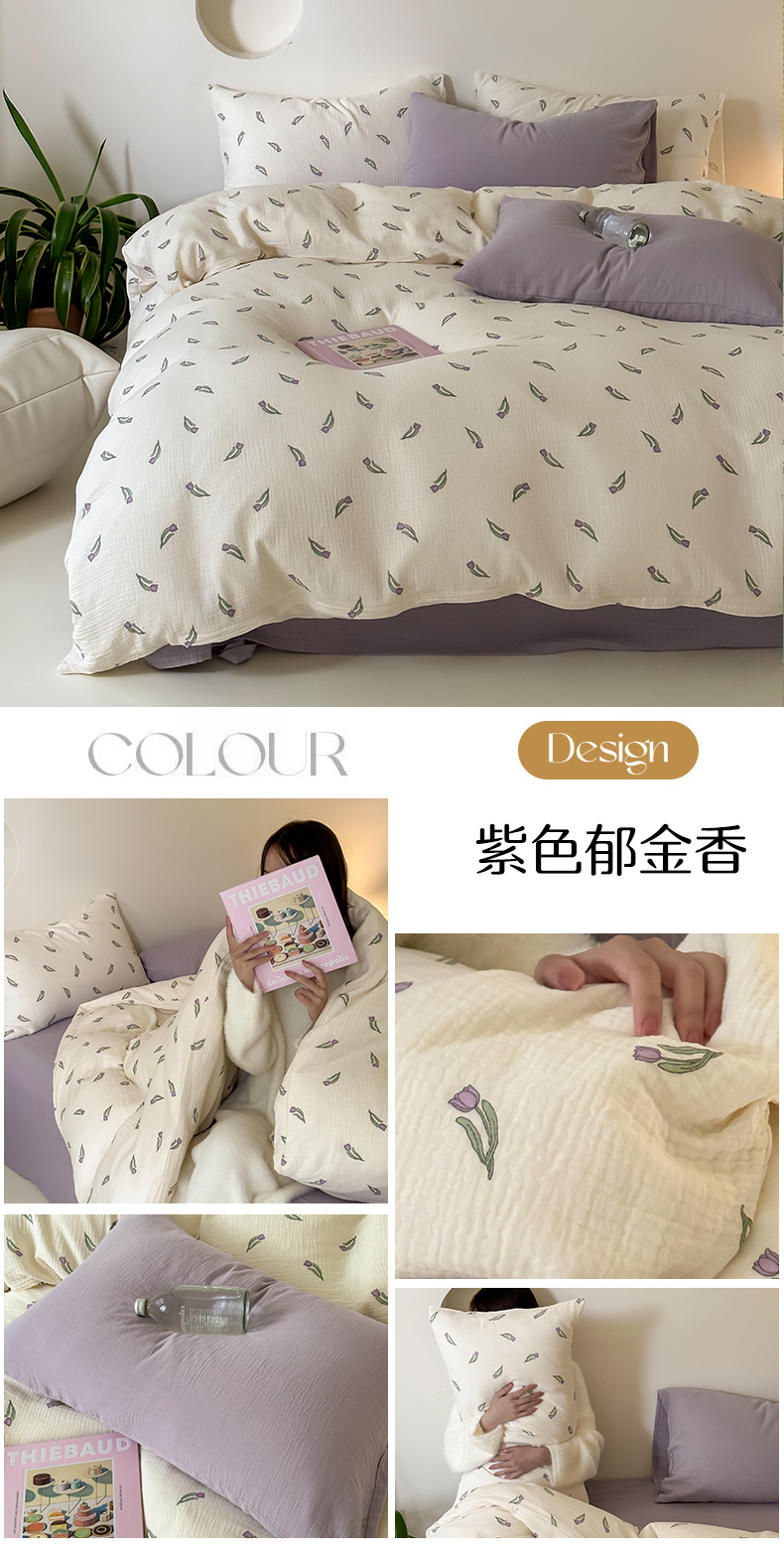 当前位置: 91家纺网 > 商品网购 > 床品套件 > 四件套 > 全棉普通四件套 > 山舍家居 2023新款全棉双层纱印花四件套 紫色郁金香