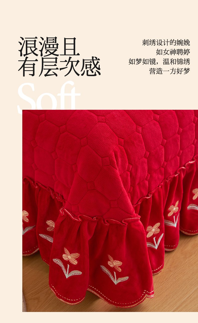 (总)恒爱 2022秋冬水晶绒翩翩花舞夹棉床裙四件套,大红色,豆沙红,橄榄绿,公主粉,桔色,咖啡色,孔雀绿,拉菲红,罗兰紫,玫红色,美人玉,米白色,米驼色,抹茶绿,浅灰色,紫色