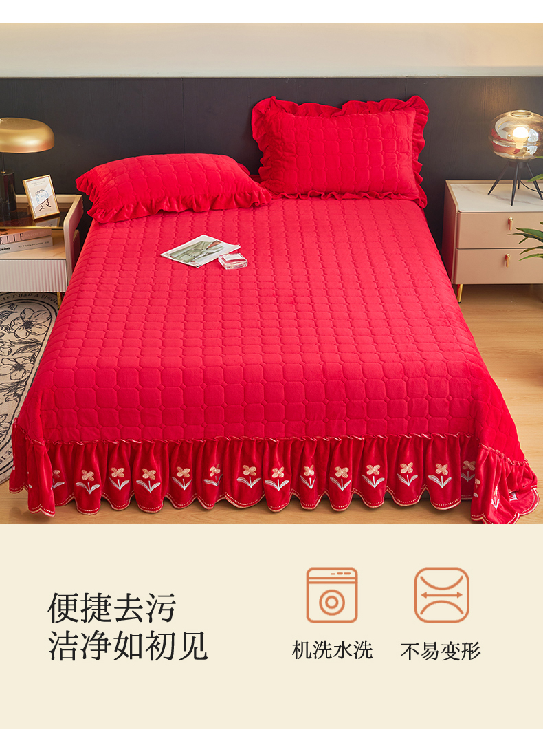 (总)恒爱 2022秋冬水晶绒翩翩花舞夹棉单床裙,大红色,豆沙红,橄榄绿,公主粉,桔色,咖啡色,孔雀绿,拉菲红,罗兰紫,玫红色,美人玉,米白色,米驼色,抹茶绿,浅灰色,紫色