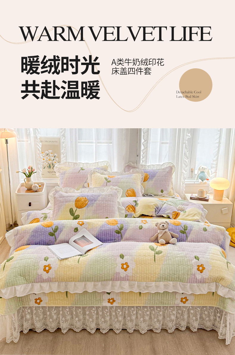 商品名称:(总)宜凡家纺 2023新款牛奶绒印花夹棉被套床盖四件套