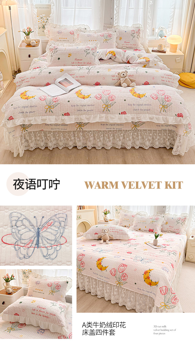 (总)宜凡家纺 2025新款兔绒提花牛奶绒夹棉床裙四件套,爱心 少女粉,爱心 粉紫,爱心 驼色,蝶舞 大红,蝶舞 米色,蝶舞 浅紫,蝶舞 玉色,简爱 苍青,简爱 豆沙紫,简爱 玉色,樱桃 苍青,樱桃 豆沙紫,樱桃 奶油白