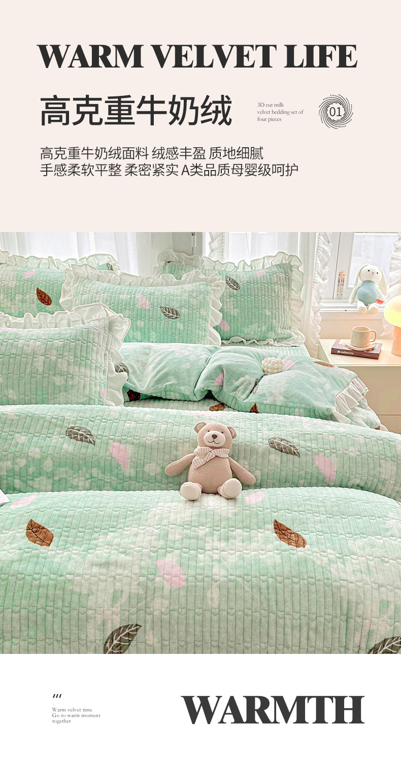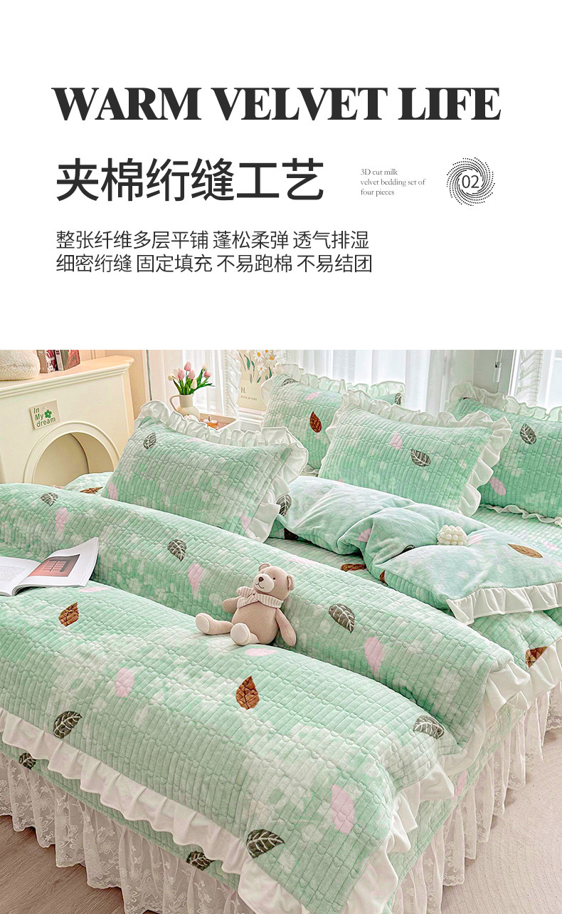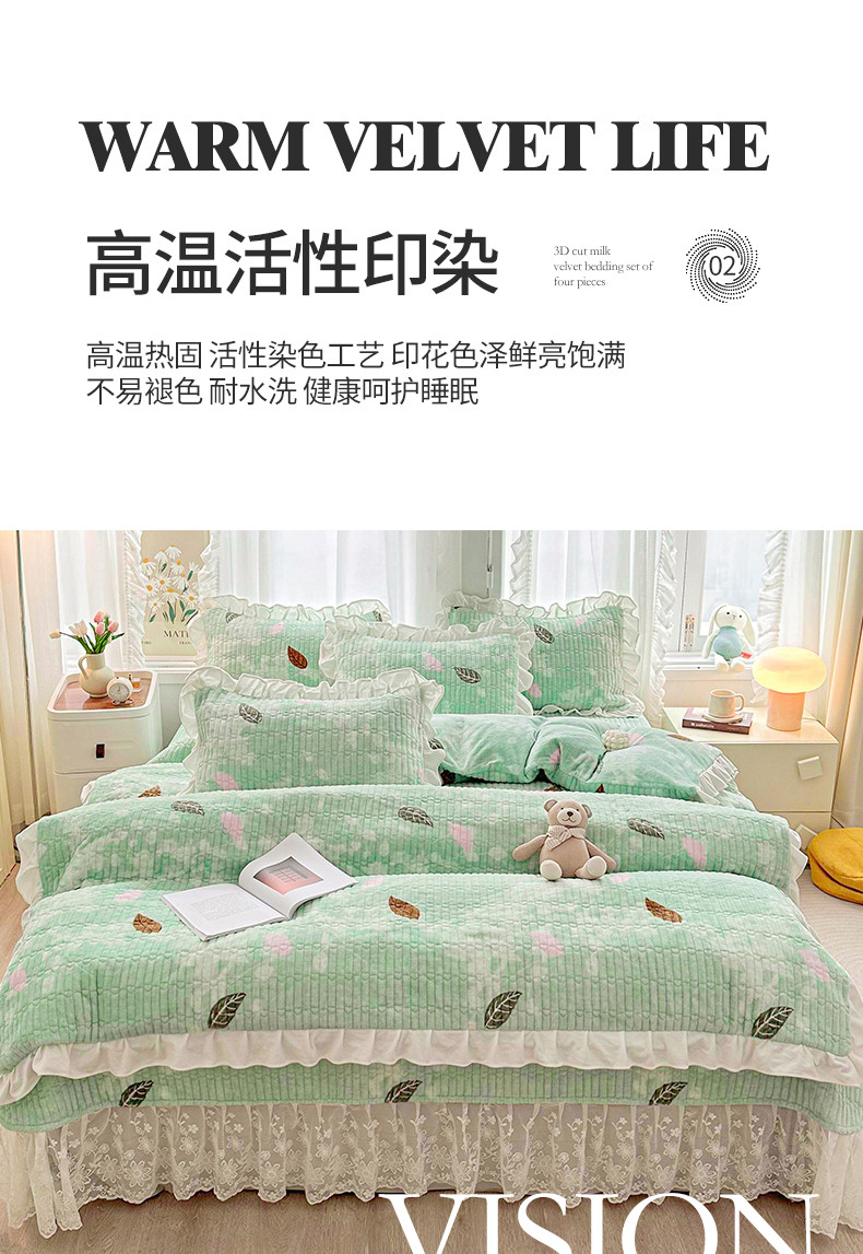 当前位置: 91家纺网 > 商品网购 > 床品套件 > 四件套 > 牛奶绒四件套 > 宜凡家纺 2023新款牛奶绒印花夹棉被套床盖四件套 潇潇叶