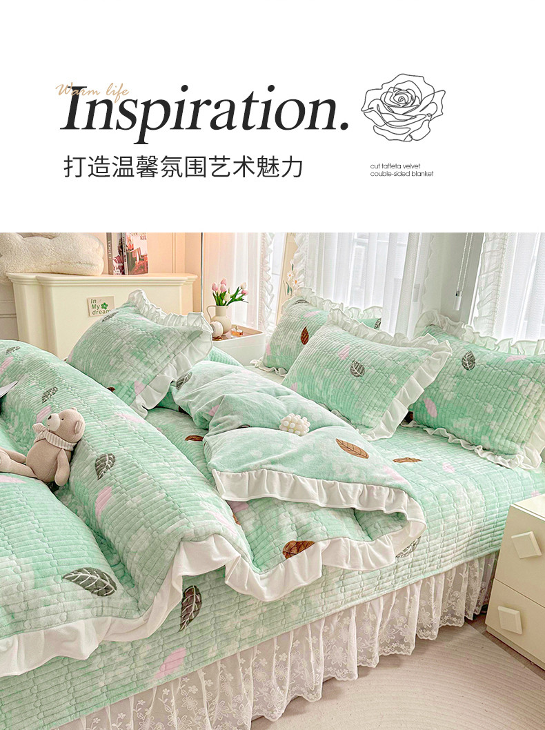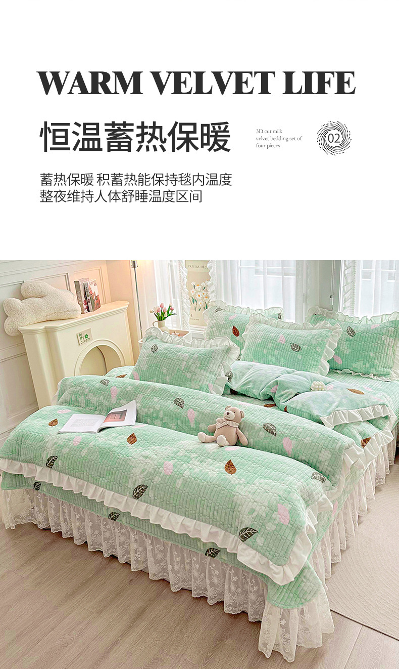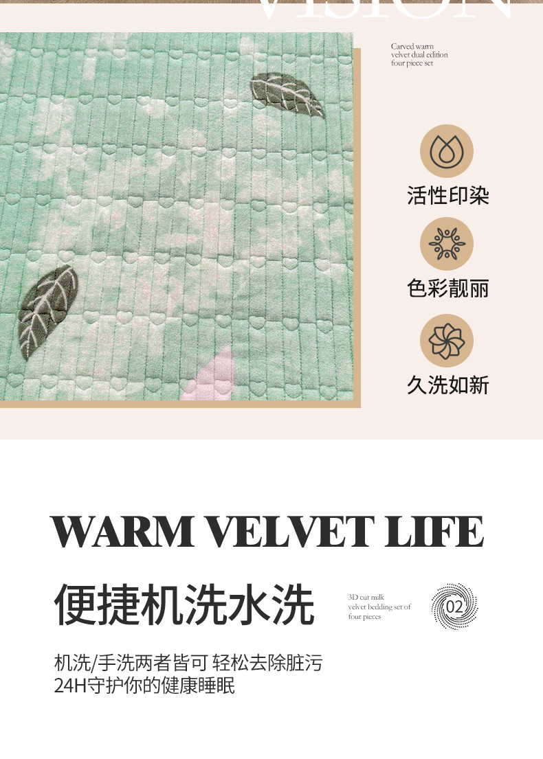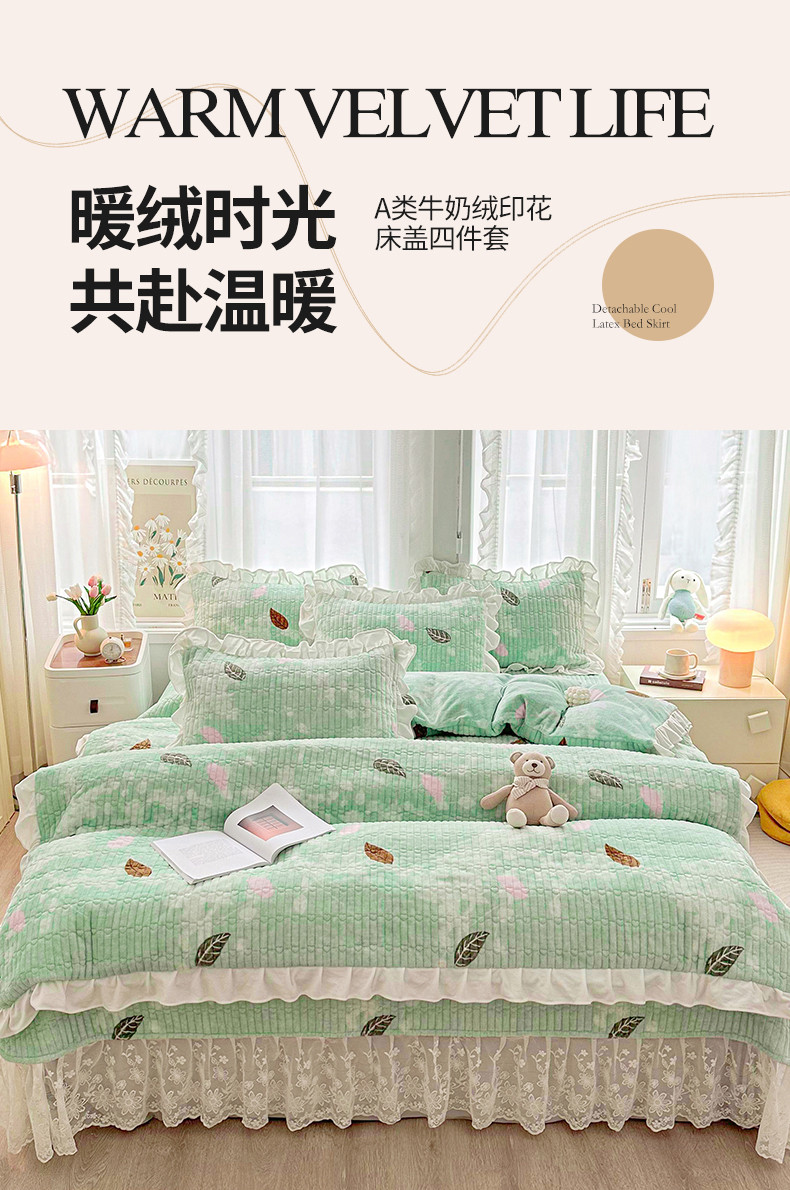 当前位置: 91家纺网 > 商品网购 > 床品套件 > 四件套 > 牛奶绒四件套 > 宜凡家纺 2023新款牛奶绒印花夹棉被套床盖四件套 潇潇叶