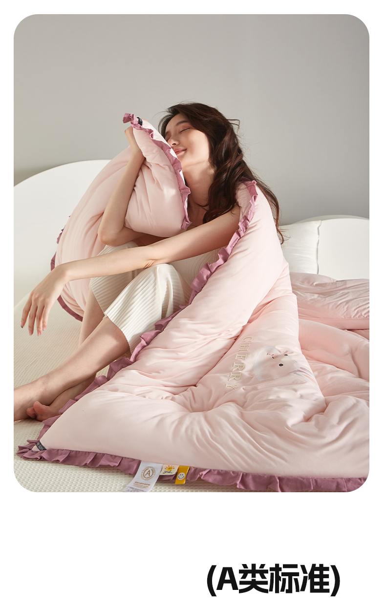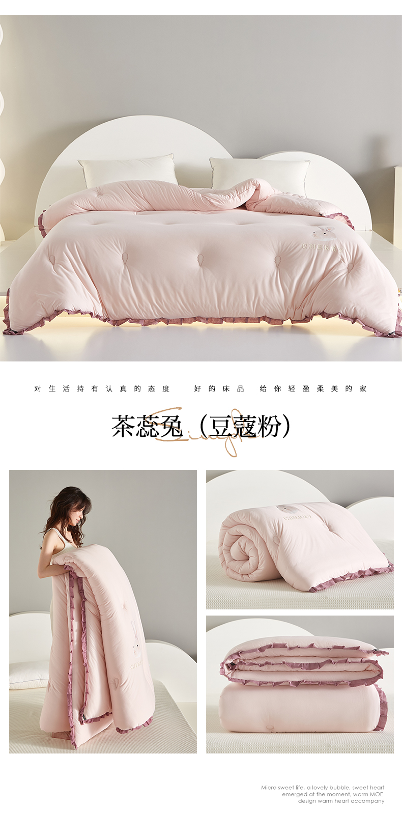 (总)莱福仕家纺 2025新款60支全棉磨毛10A中科抗菌被被子被芯,组合图仅供展示不可下单,富山白,蔷薇粉