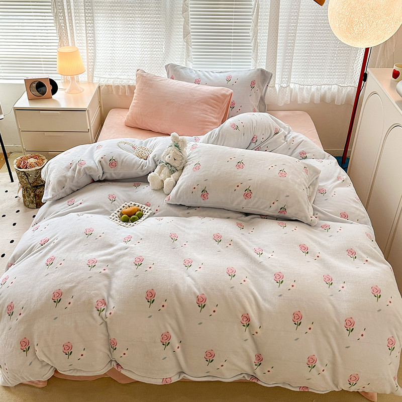 (总)昔可 2023新款柔软舒适混搭牛奶绒四件套