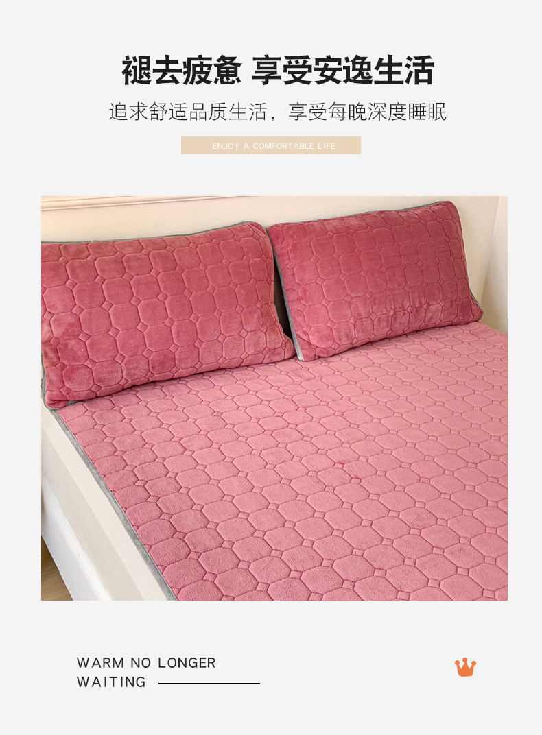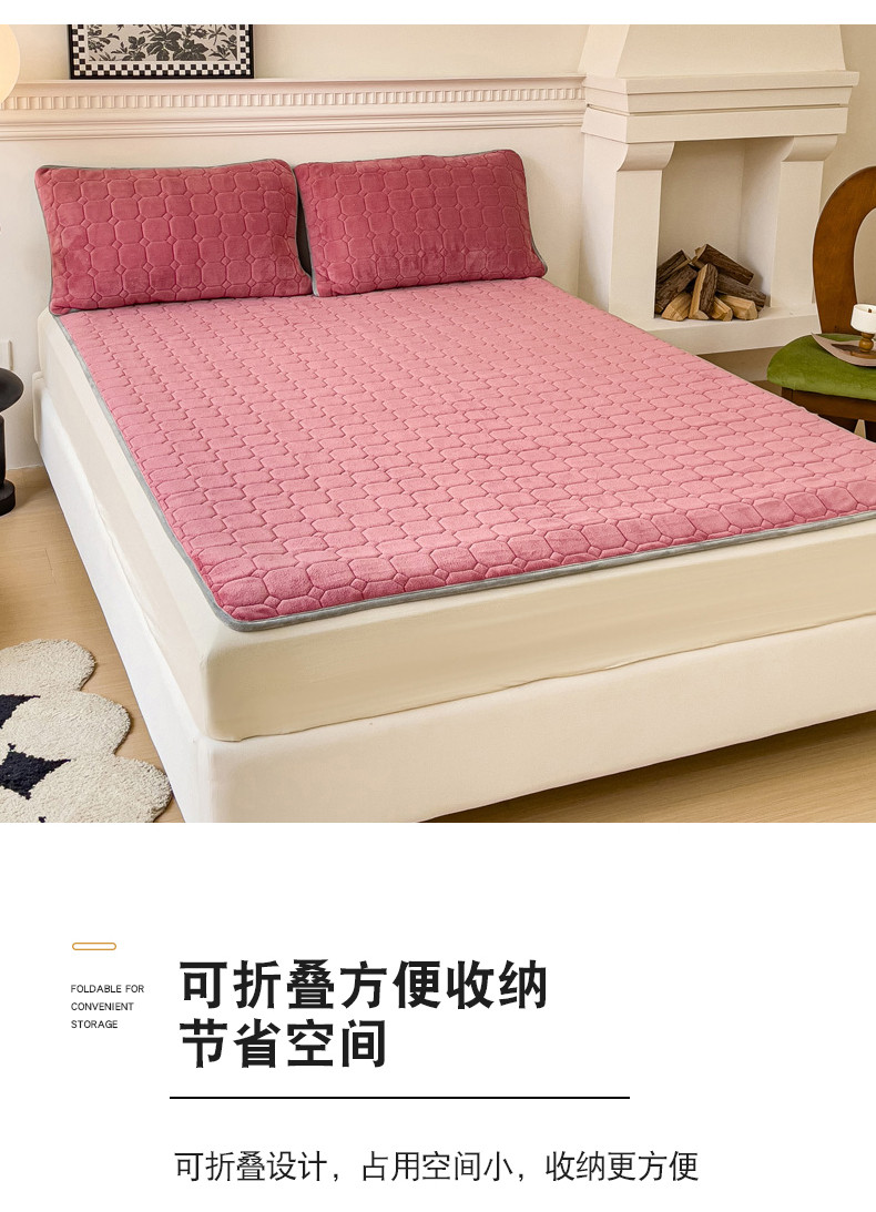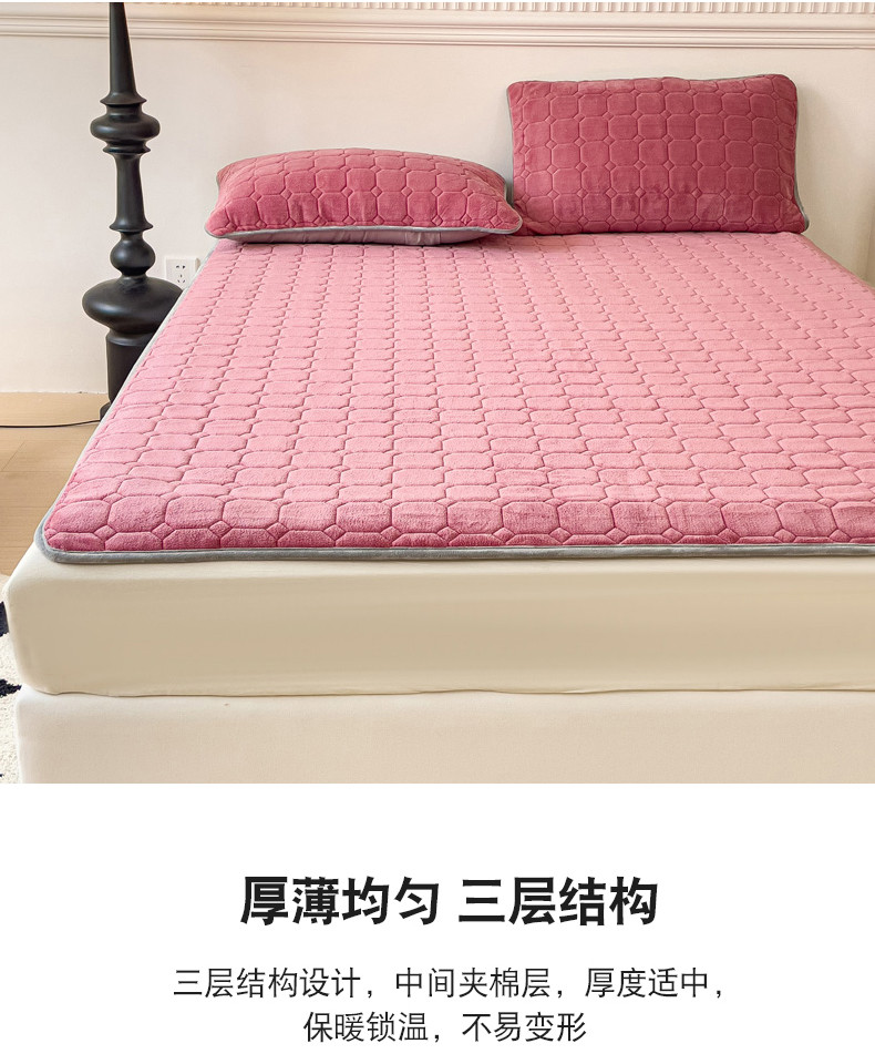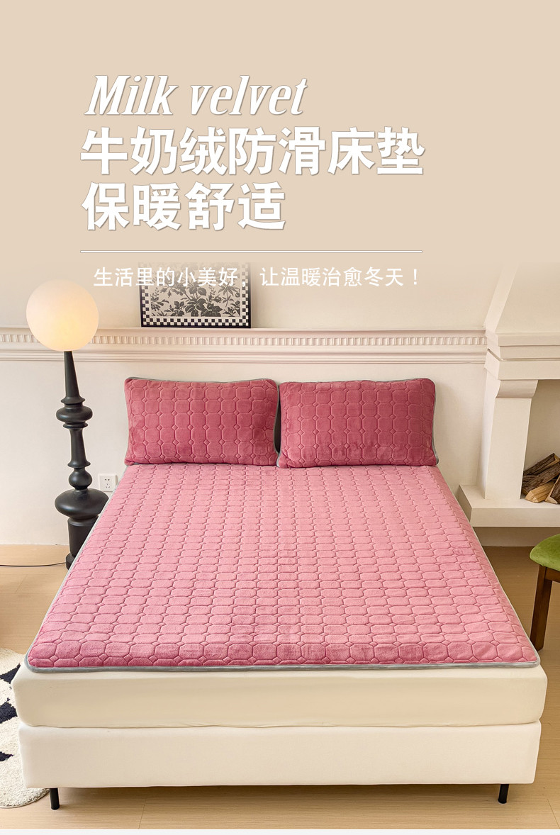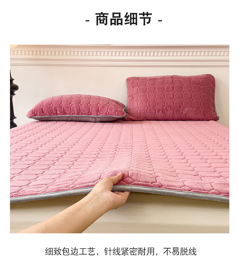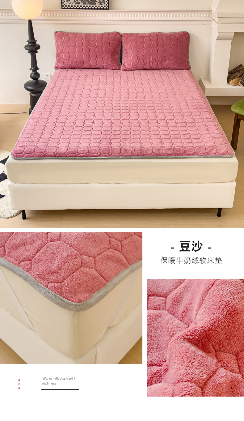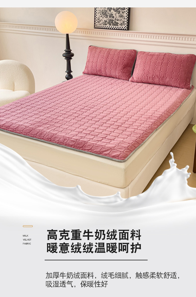 商品名称:金丝鸟家纺 2023新款纯色牛奶绒绗缝软床垫 豆沙