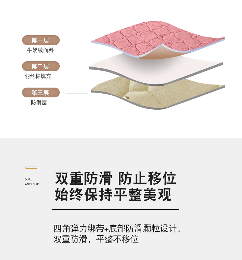 金丝鸟家纺 2023新款纯色牛奶绒绗缝软床垫 豆沙