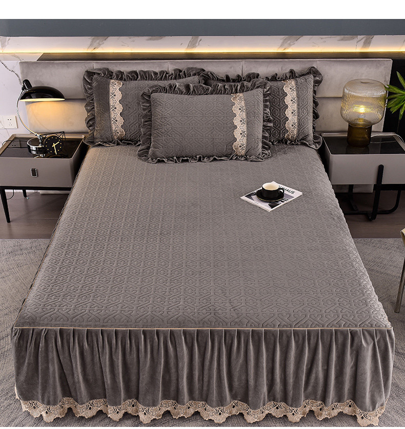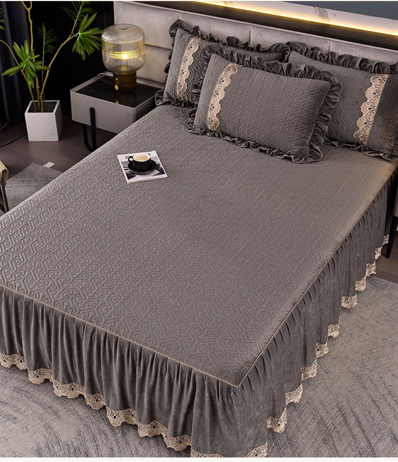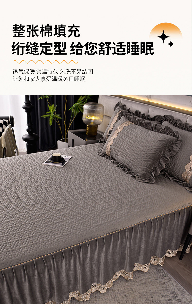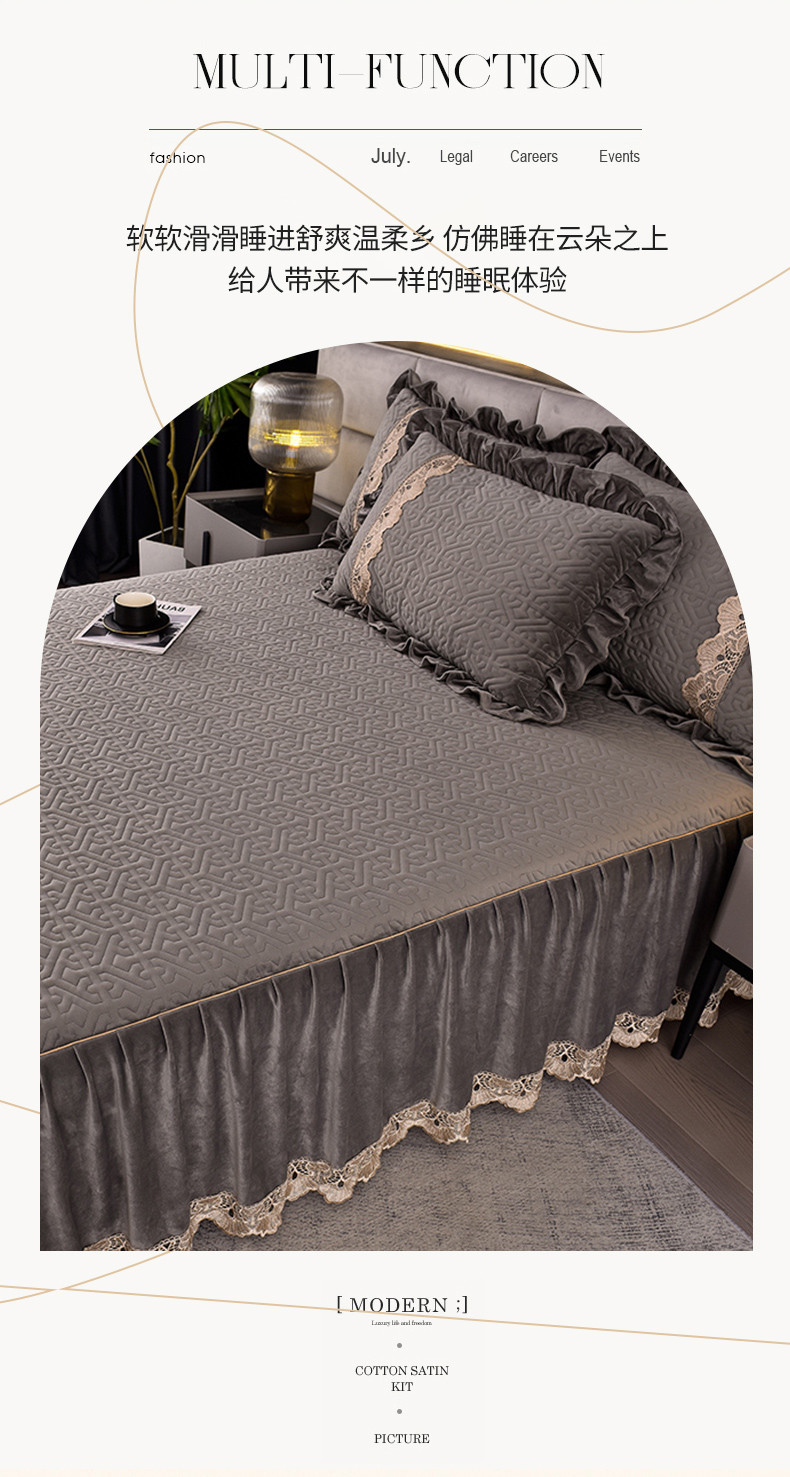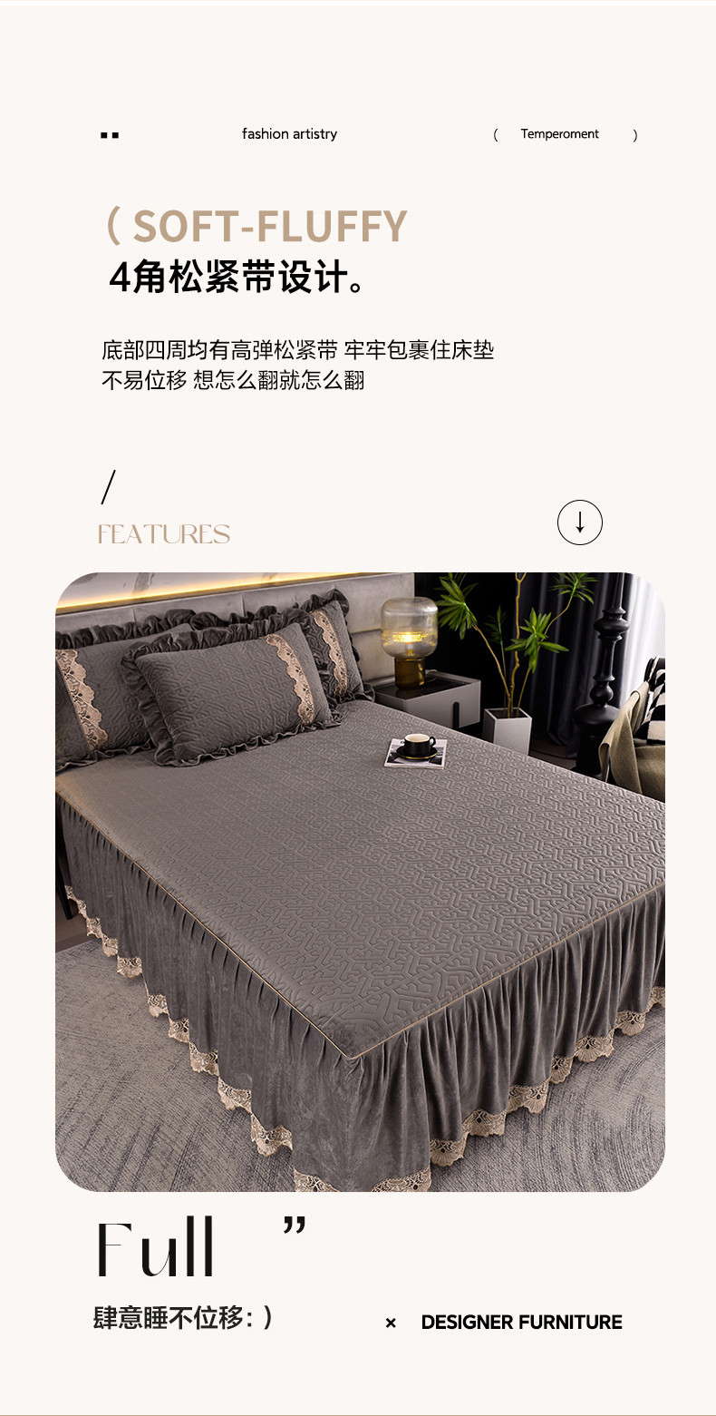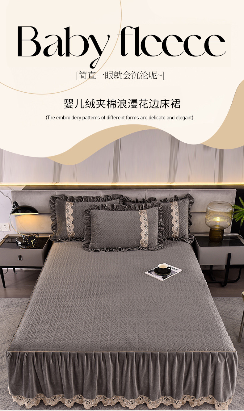 商品名称:忘忧草 2023新款安娜系列婴儿绒夹棉浪漫花边床裙 安娜-高级灰