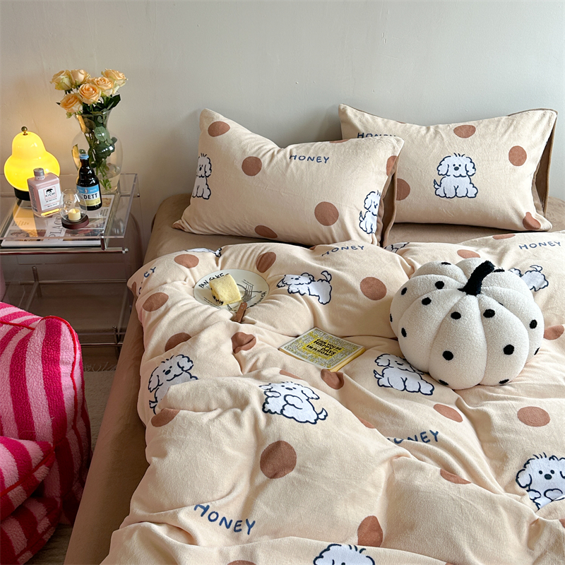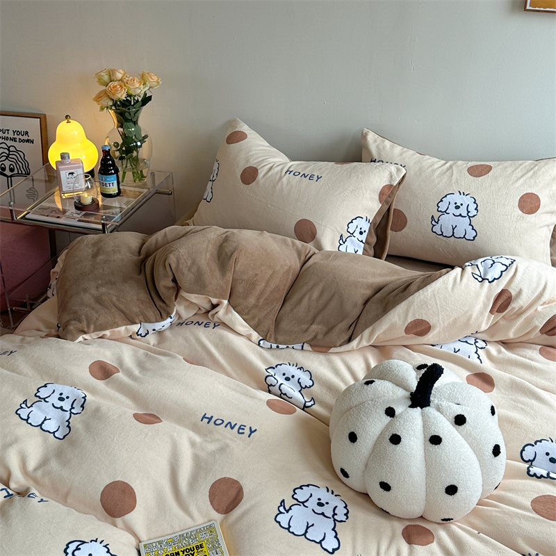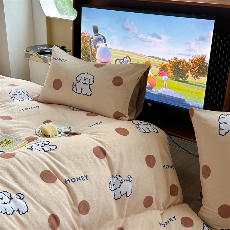 商品名称:时年家纺 2023新款牛奶绒印花系列套件 小可爱风格 马尔济斯-咖