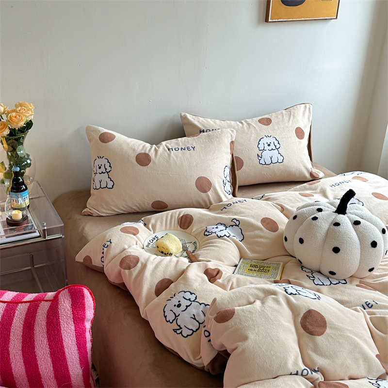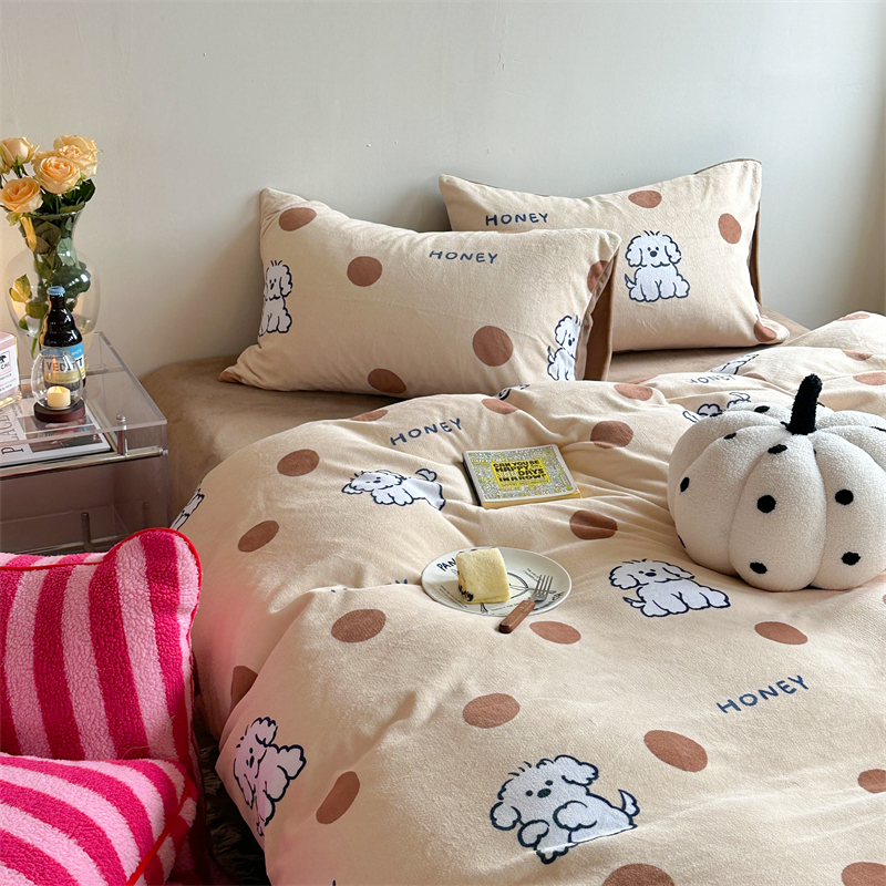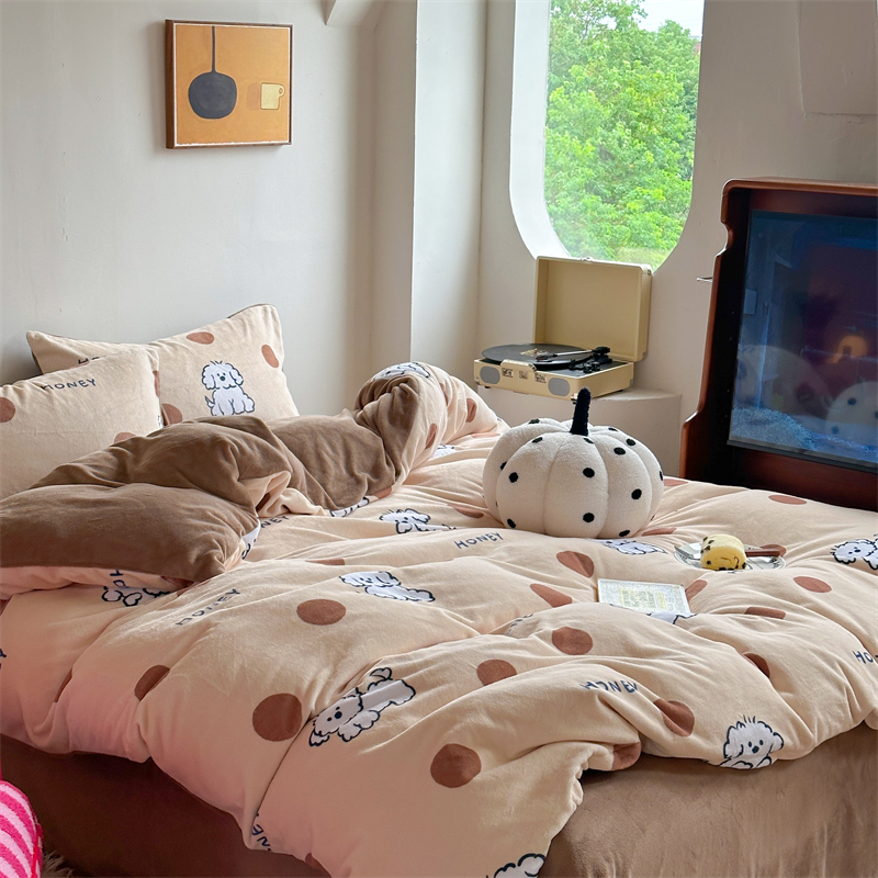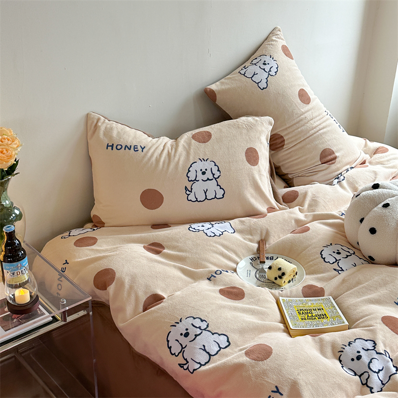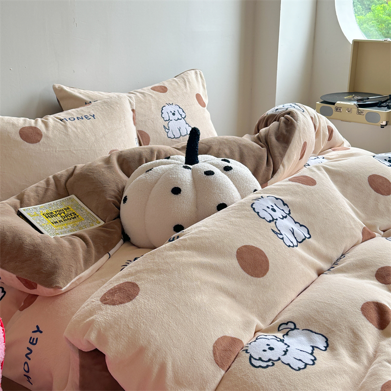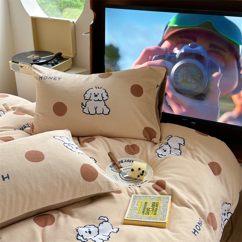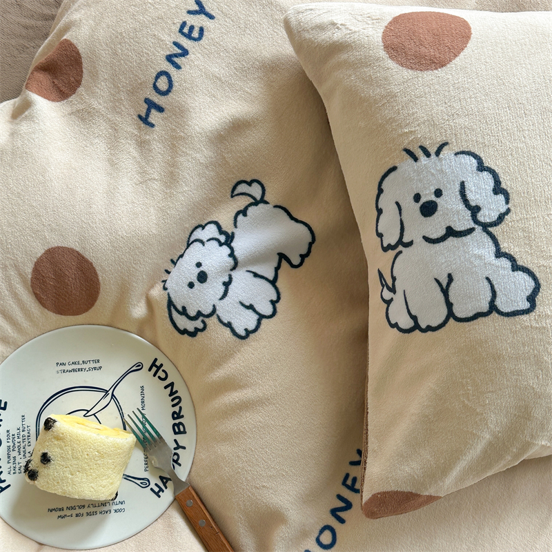 时年家纺 2023新款牛奶绒印花系列套件 小可爱风格 马尔济斯-咖