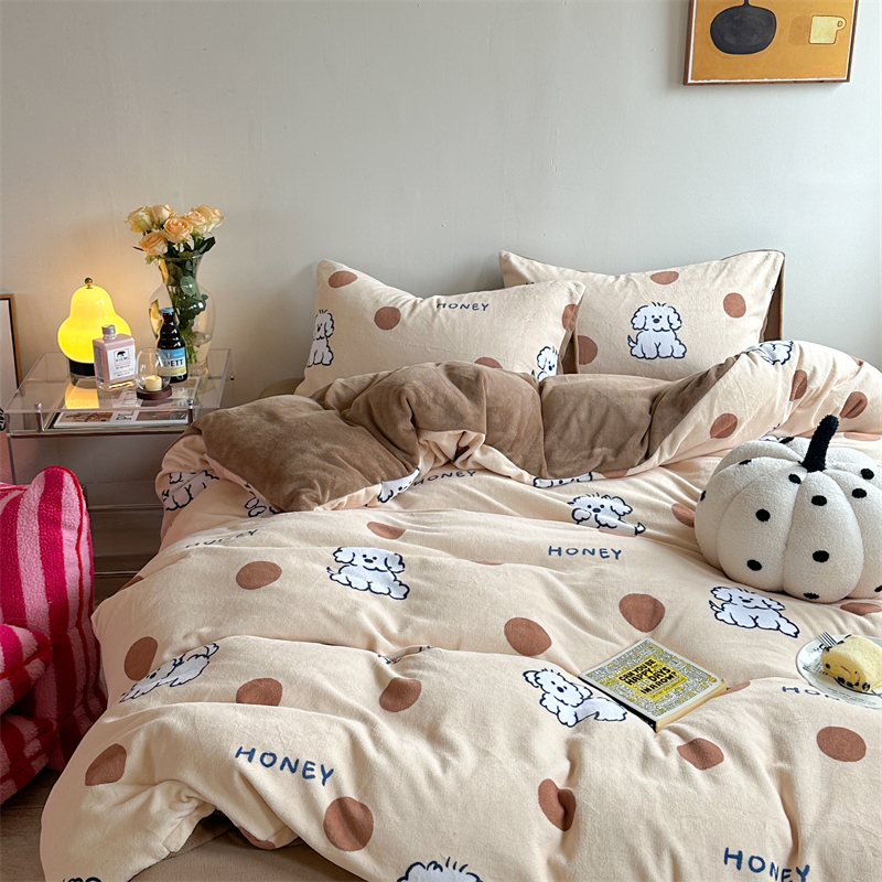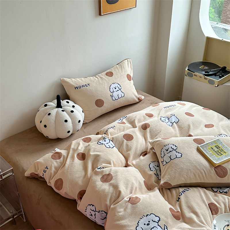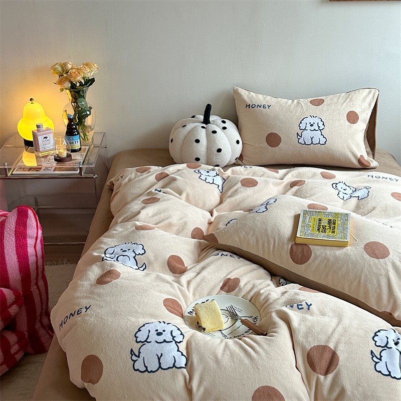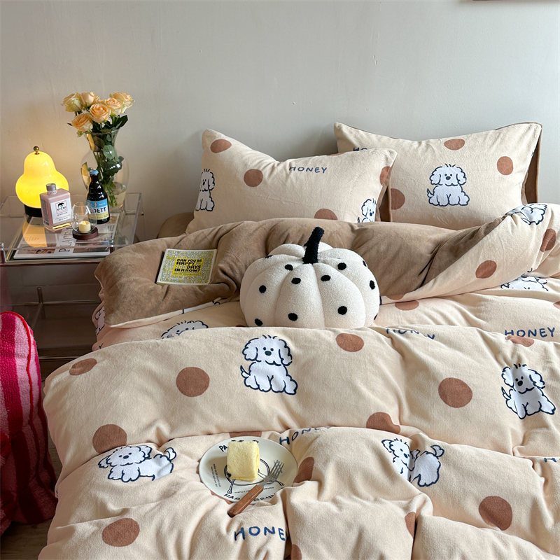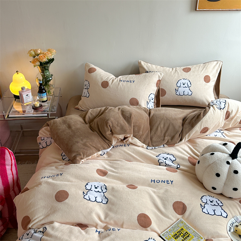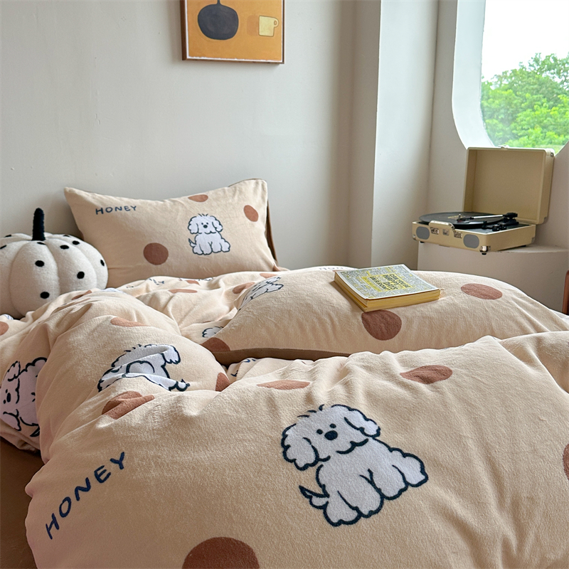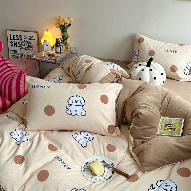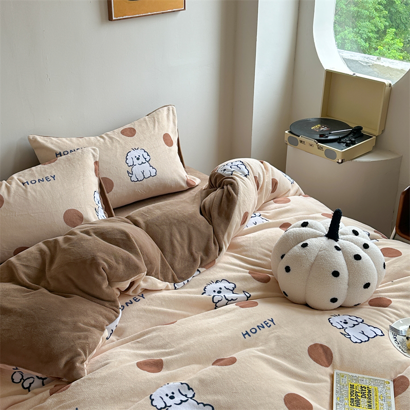 时年家纺 2023新款牛奶绒印花系列套件 小可爱风格 马尔济斯-咖