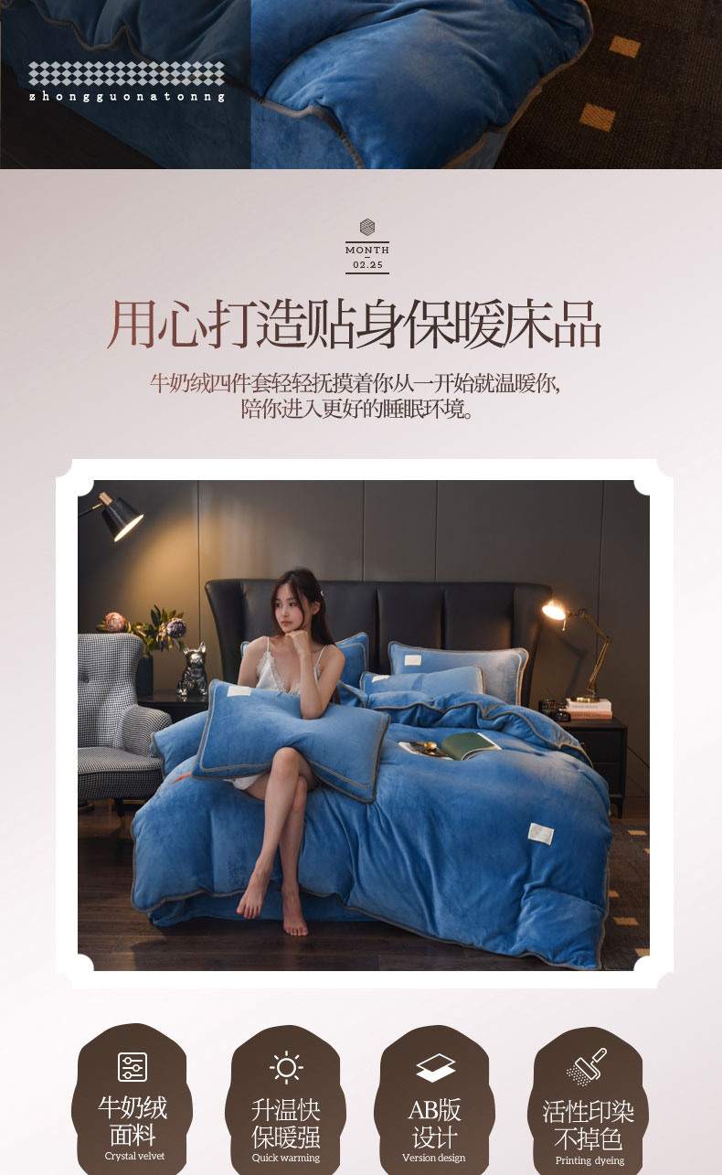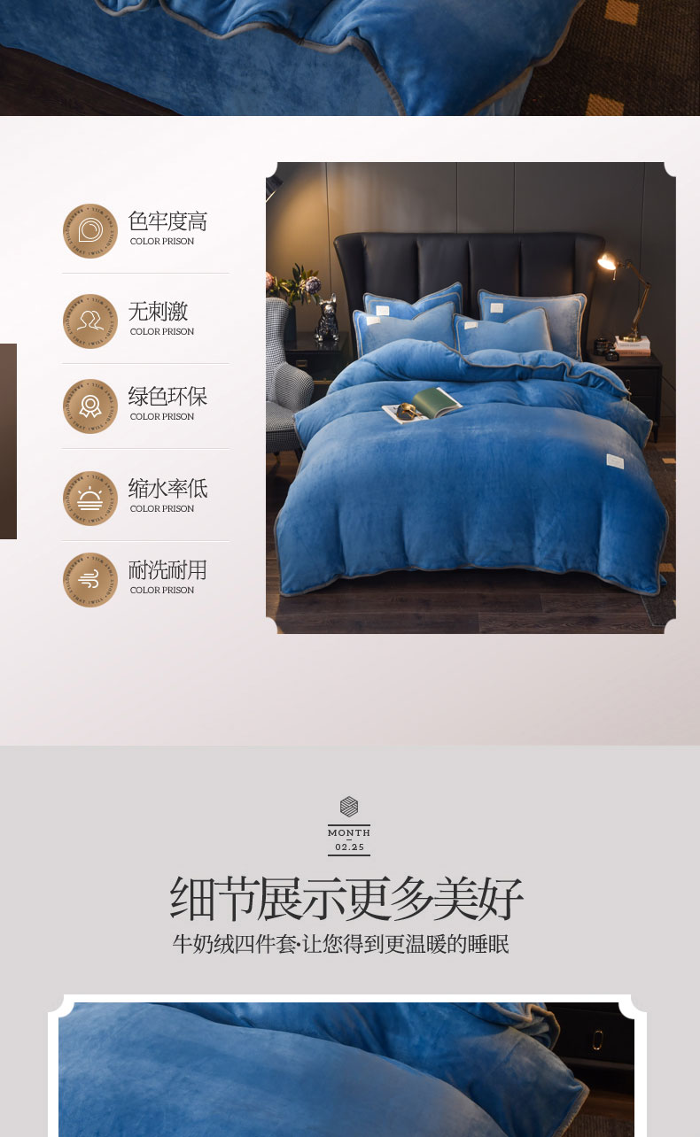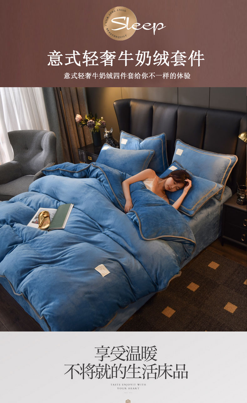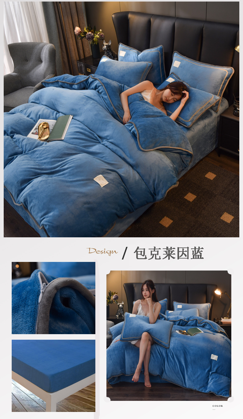 当前位置: 91家纺网 > 商品网购 > 床品套件 > 四件套 > 牛奶绒四件套 > 啊雅家居 2026新款纯色包边双面牛奶绒四件套 包克莱因蓝