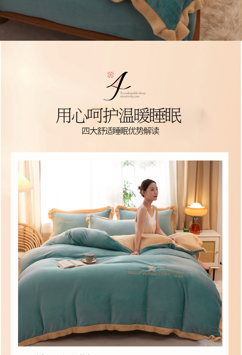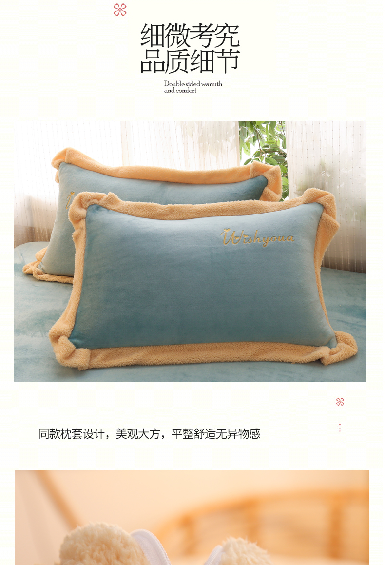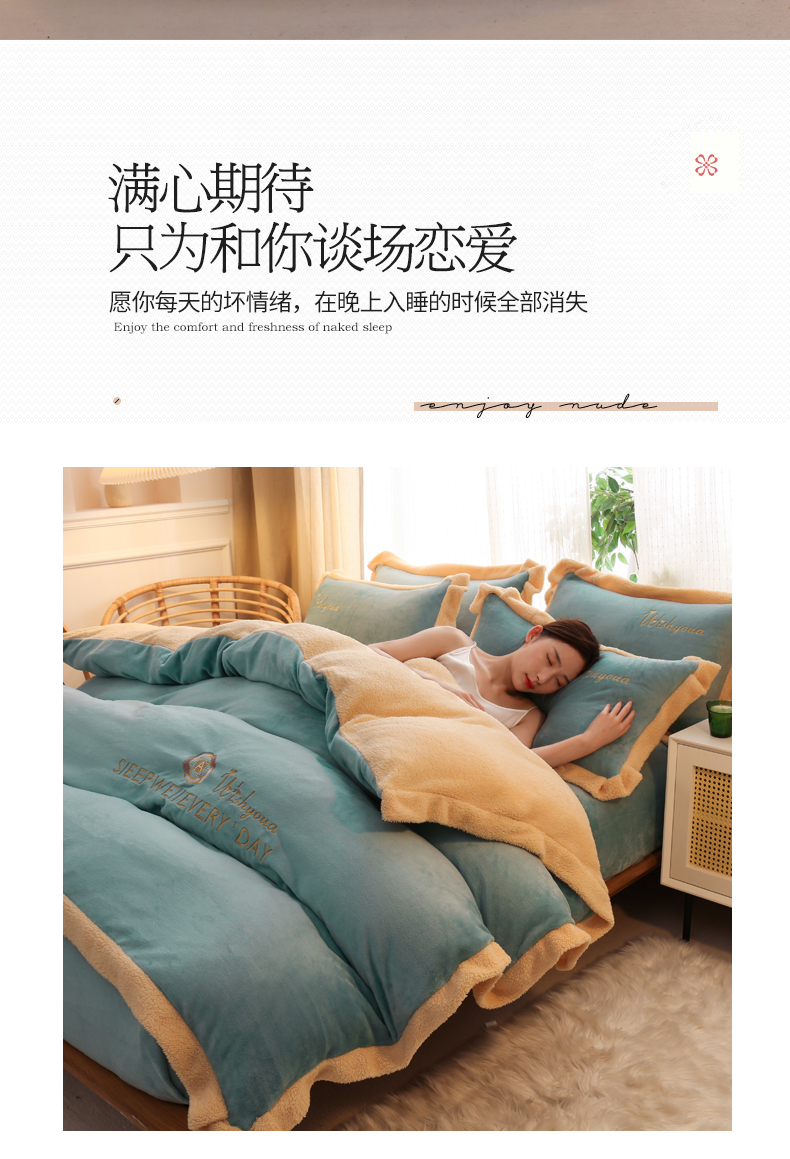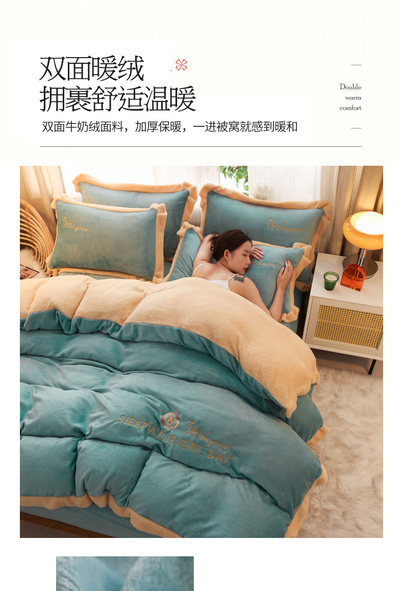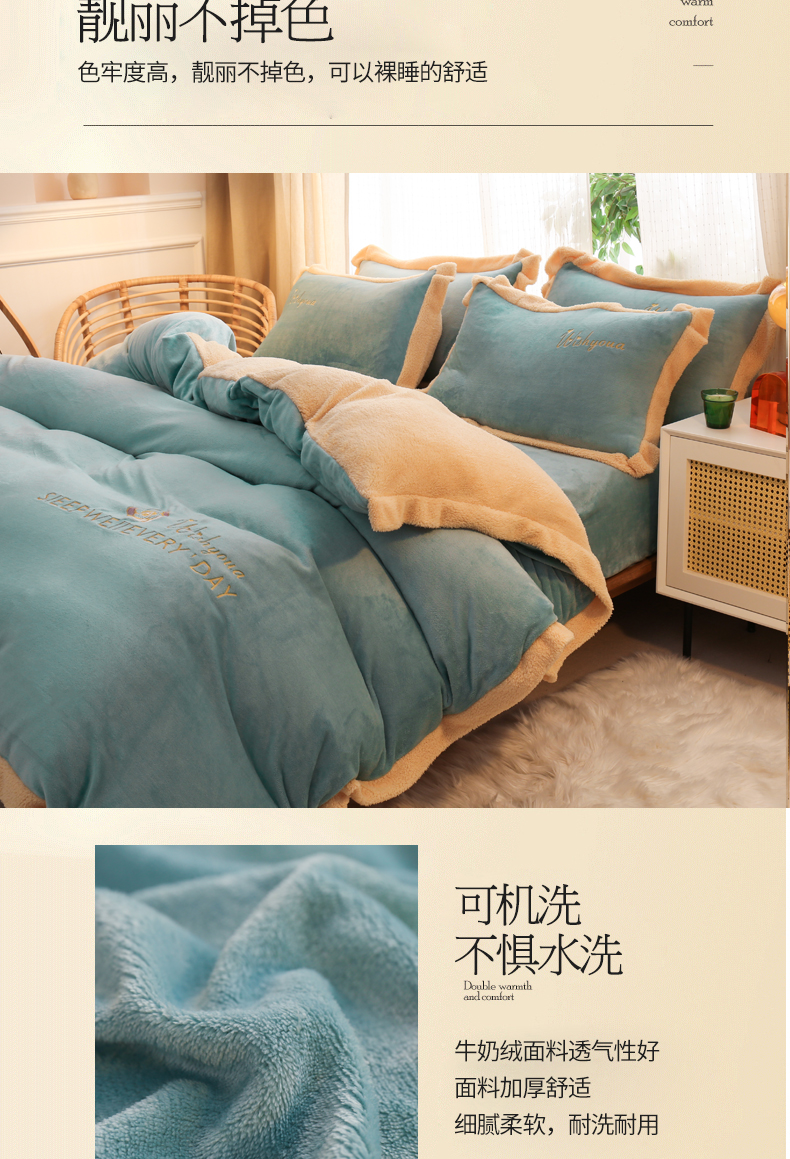 当前位置: 91家纺网 > 商品网购 > 床品套件 > 四件套 > 牛奶绒四件套 > 啊雅家居 2026新款绣花牛奶绒加羊羔绒四件套 水绿加米黄