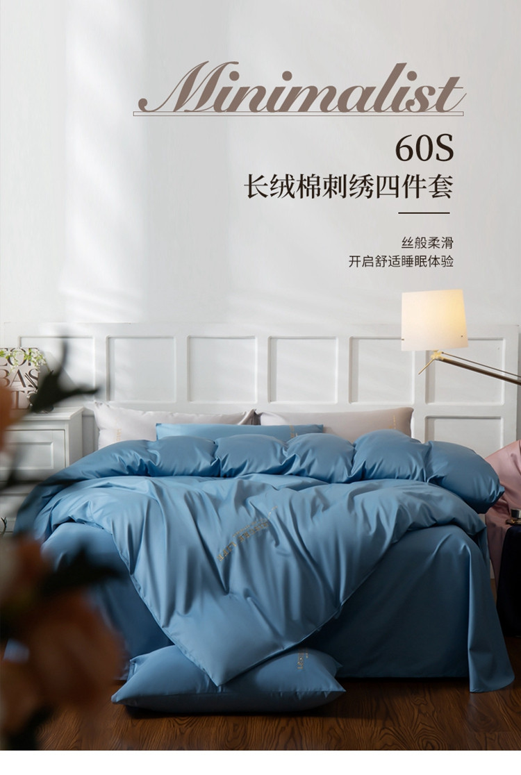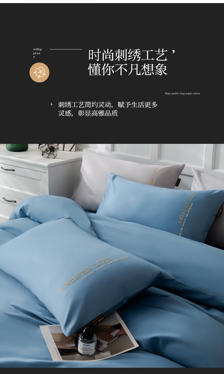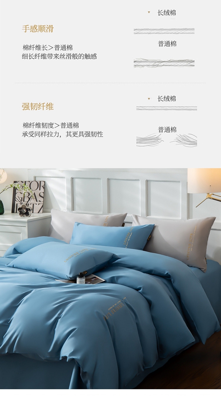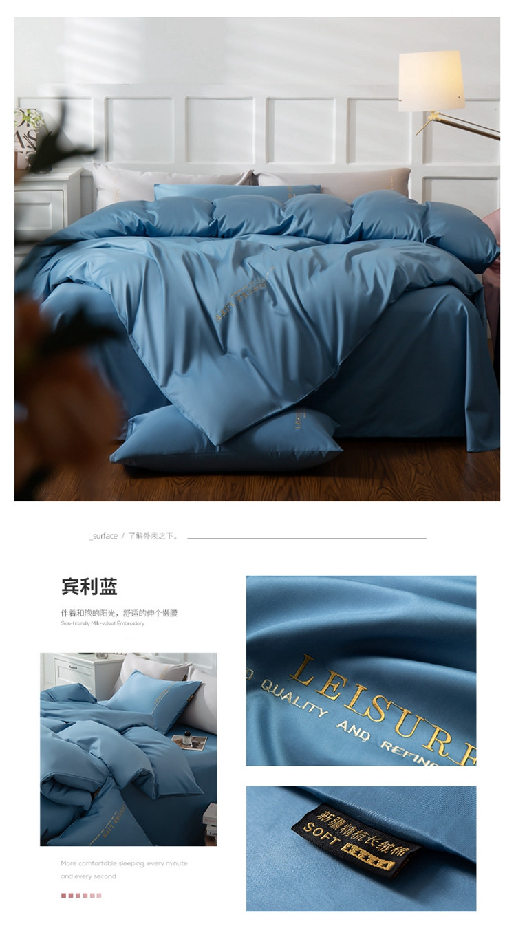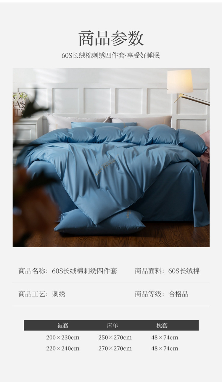 商品名称:莱阁亿 2023新款长绒棉纯色绣花四件套 宾利蓝