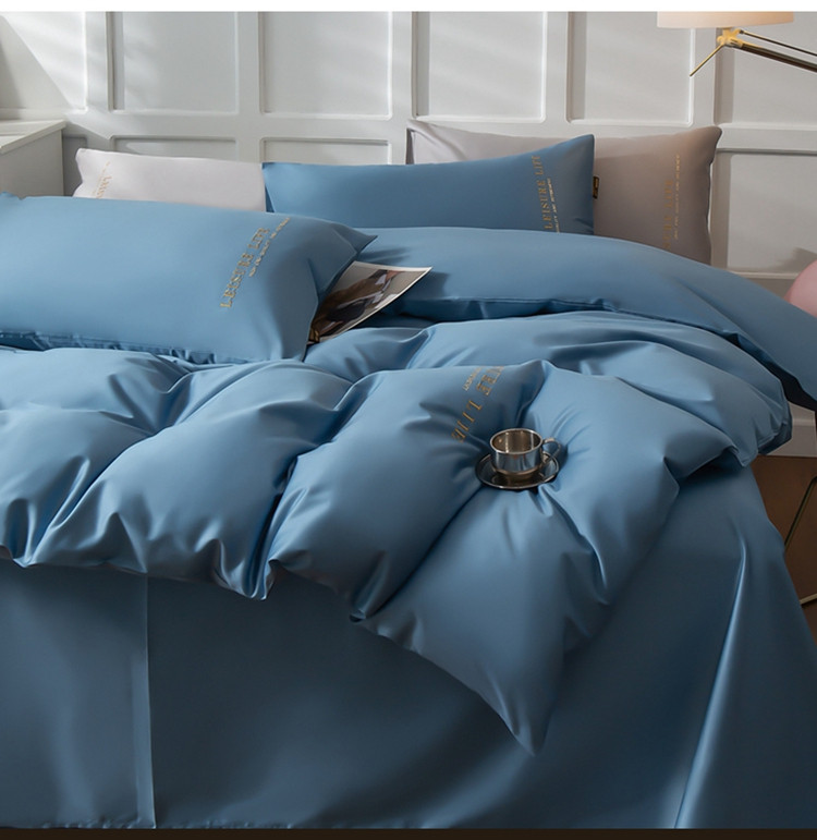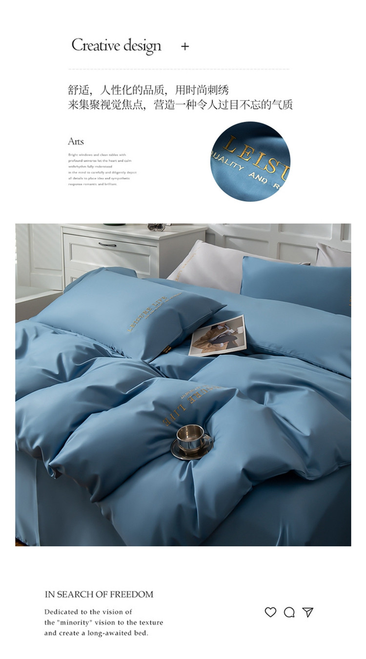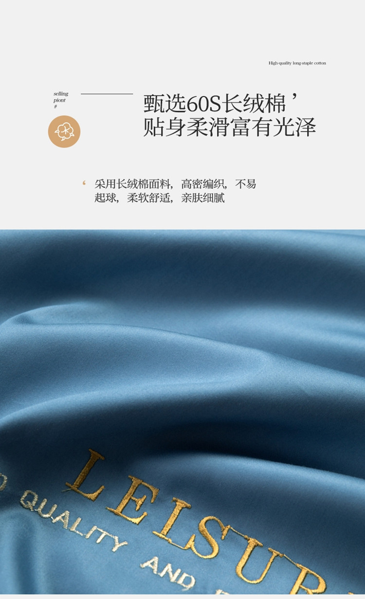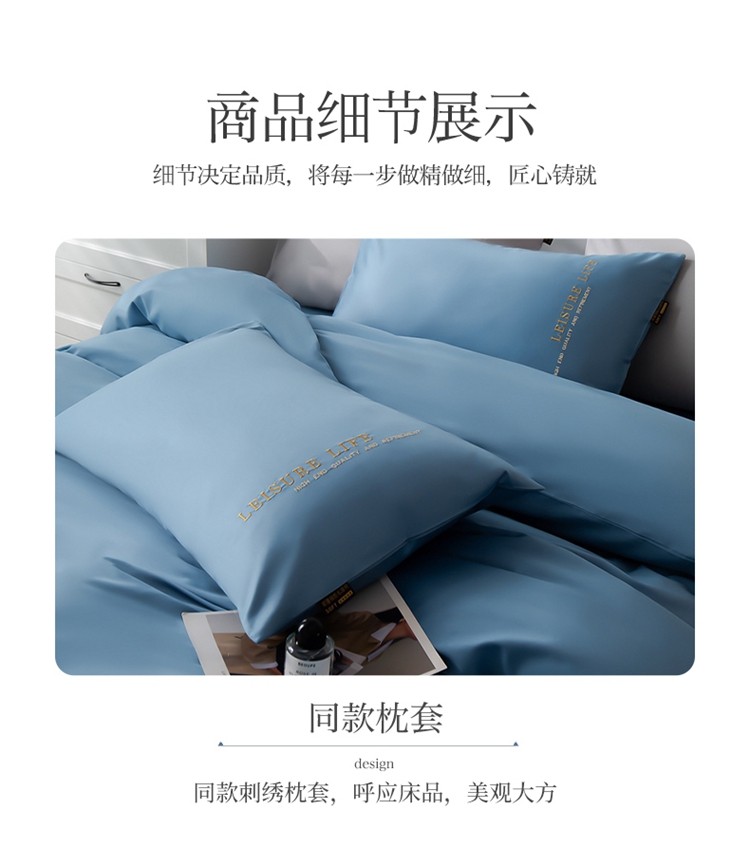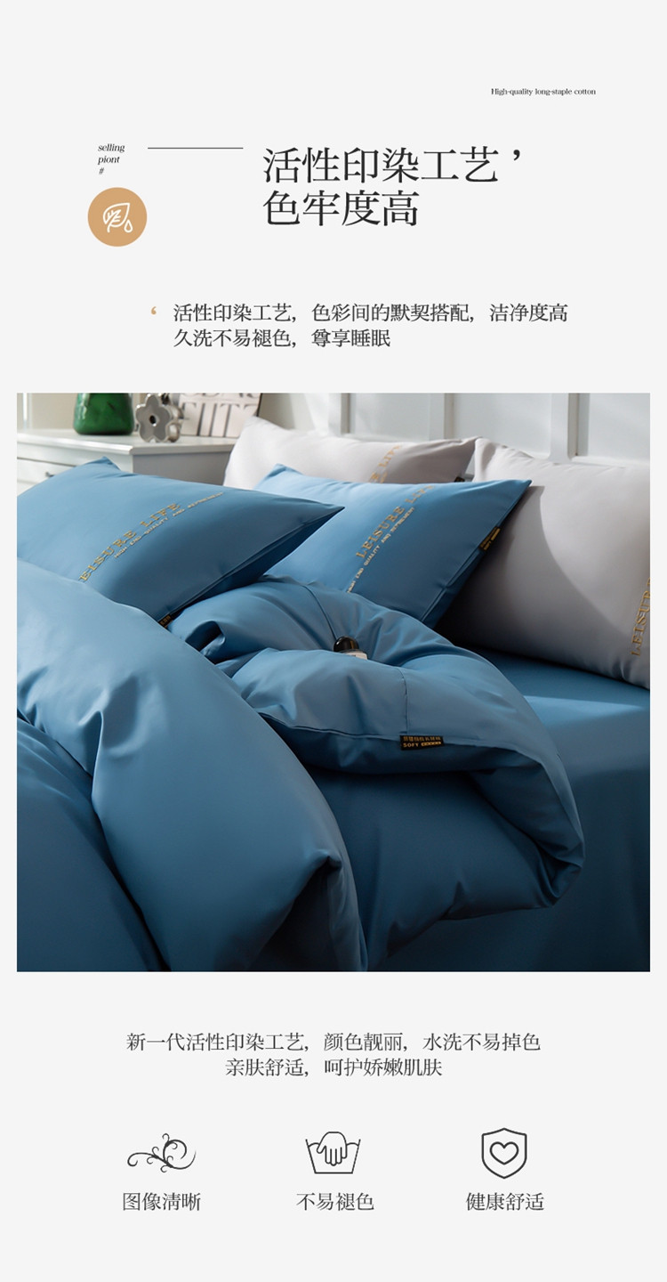商品名称:莱阁亿 2023新款长绒棉纯色绣花四件套 宾利蓝