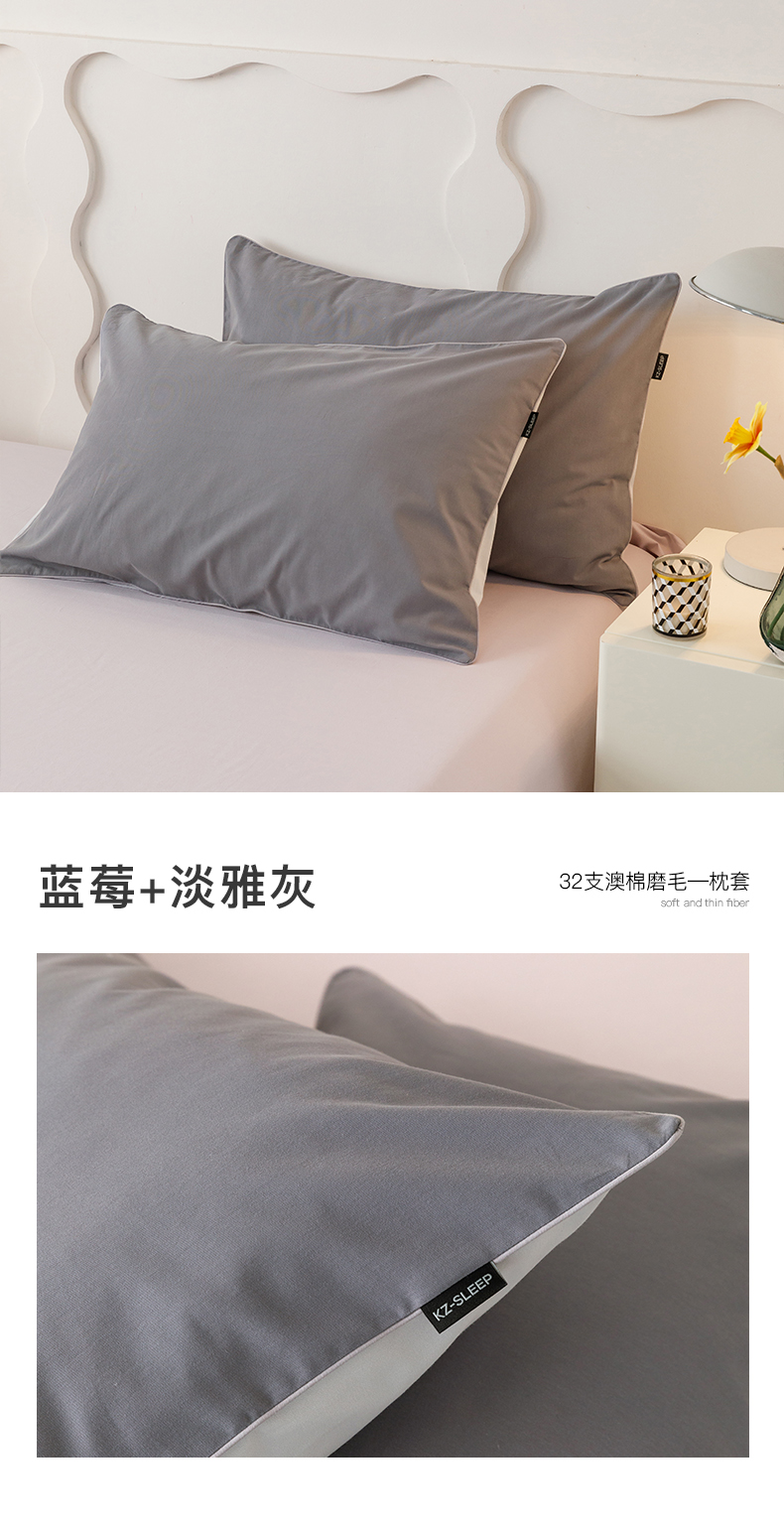 商品名称:卡姿家纺 2023新款秋冬32支澳棉磨毛维拉系列 枕套 蓝莓+淡雅灰