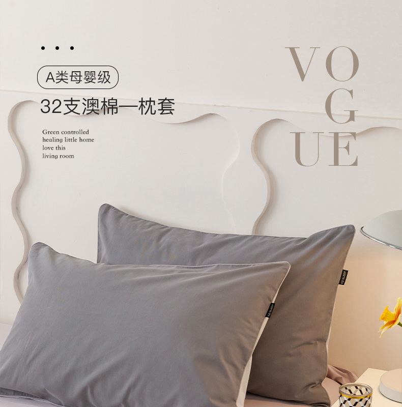 卡姿家纺 2023新款秋冬32支澳棉磨毛维拉系列 枕套 蓝莓+淡雅灰