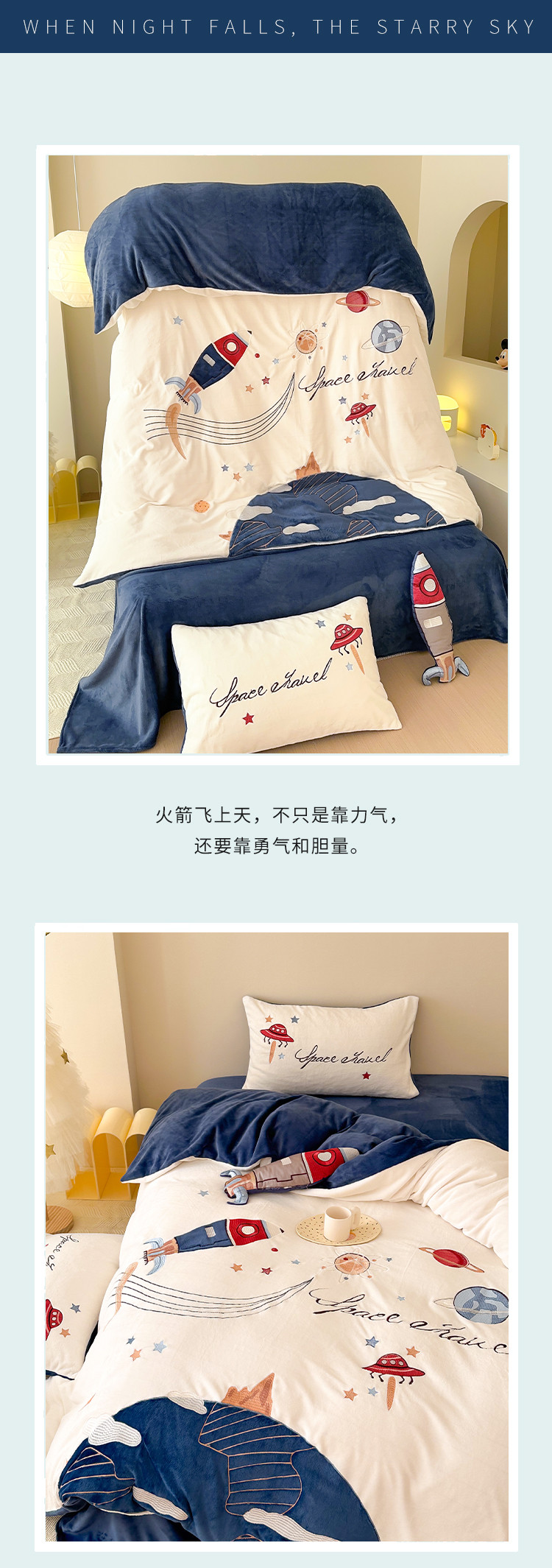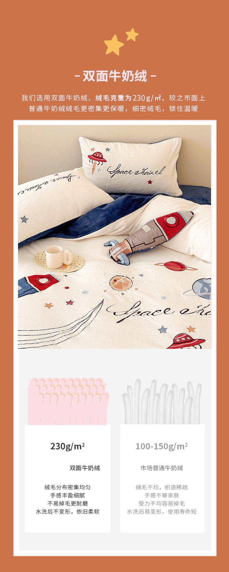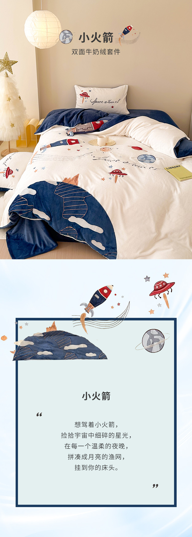 (总)西西家居 2023新款正宗230g全消光牛奶绒四件套-小火箭