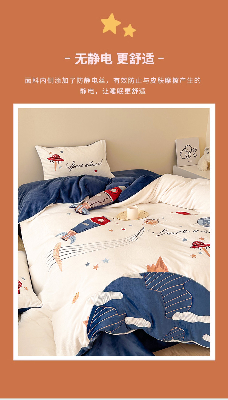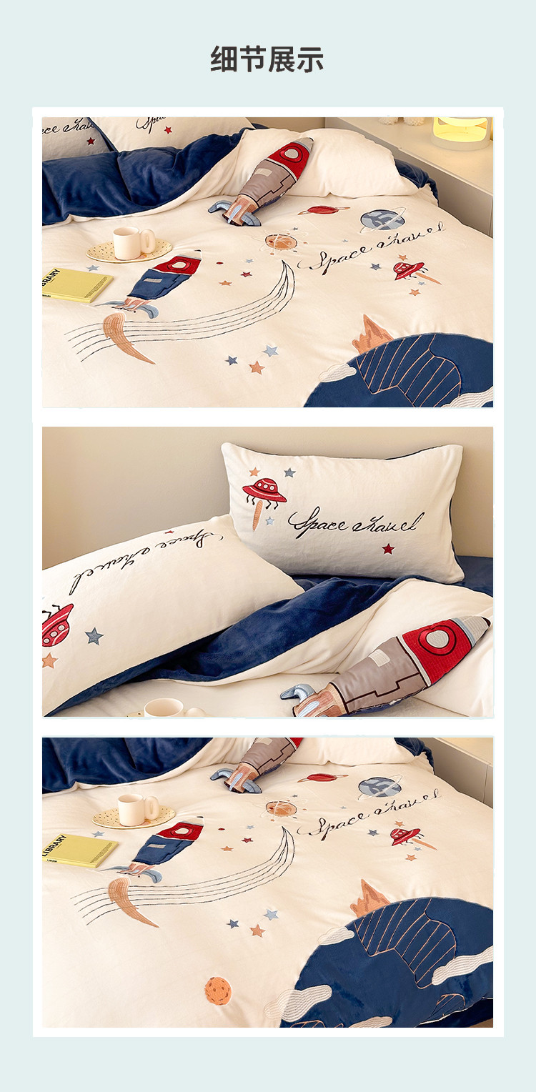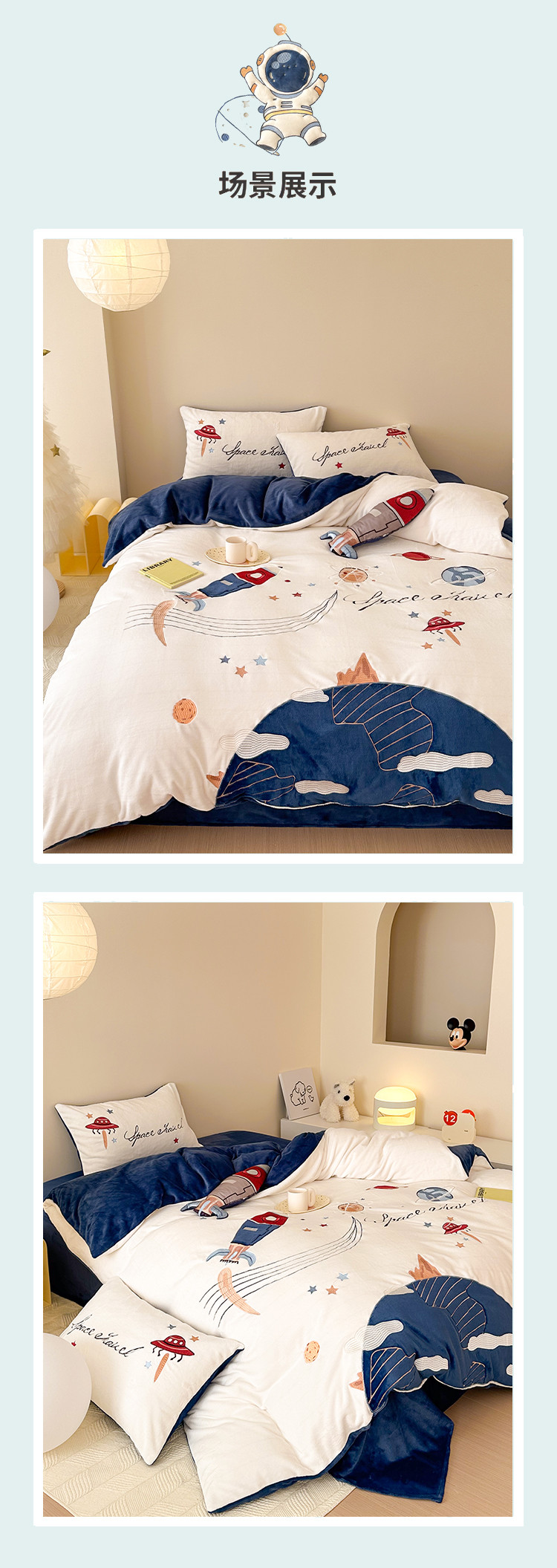(总)西西家居 2023新款正宗230g全消光牛奶绒四件套-小火箭