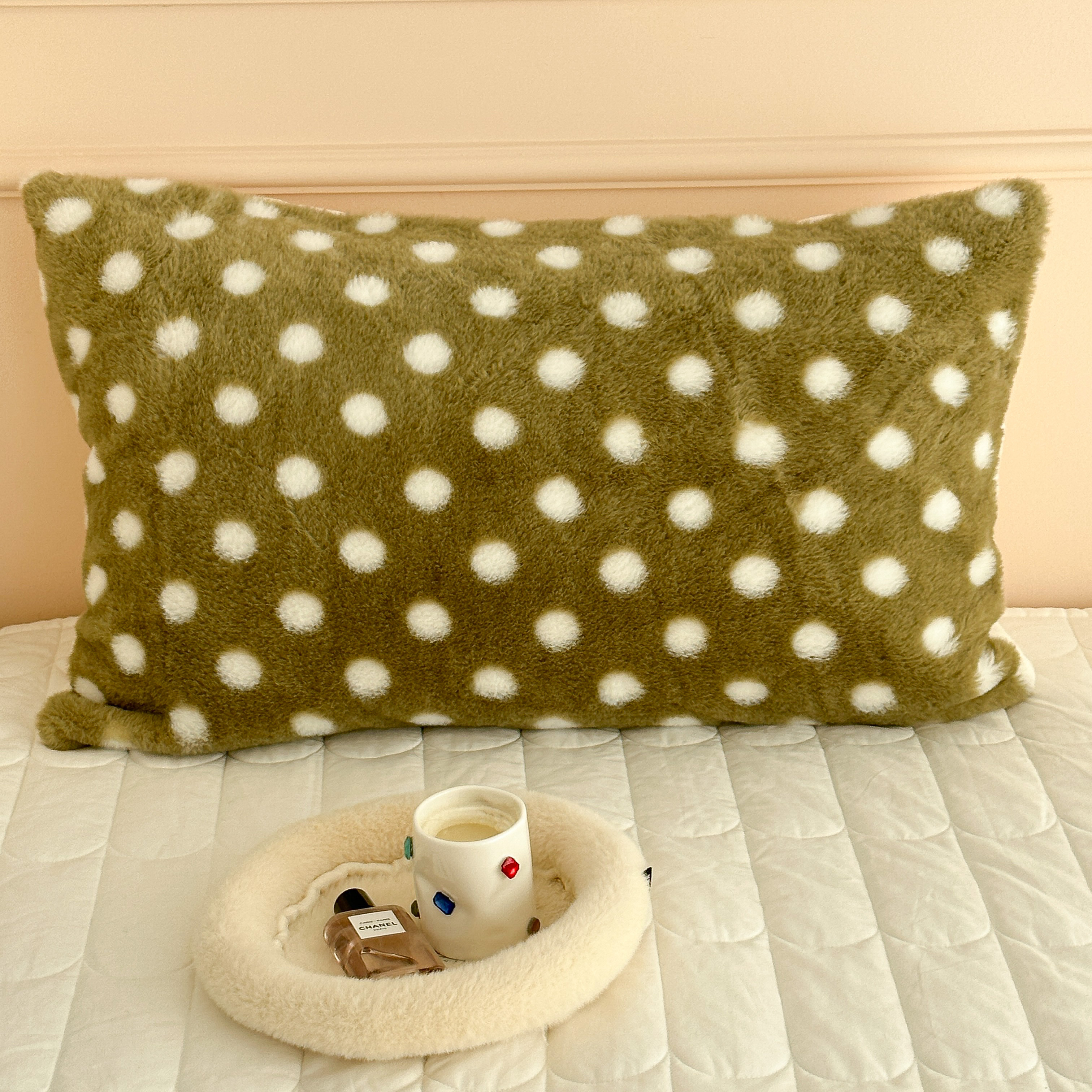 昔可 2023新款波点兔兔绒毛毯 枕套抹茶绿波点