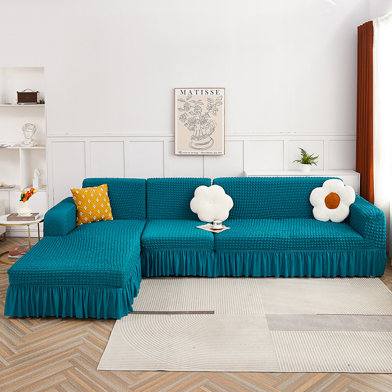 丝绮鹿 2023新款爆米花裙边贵妃沙发套 黛蓝