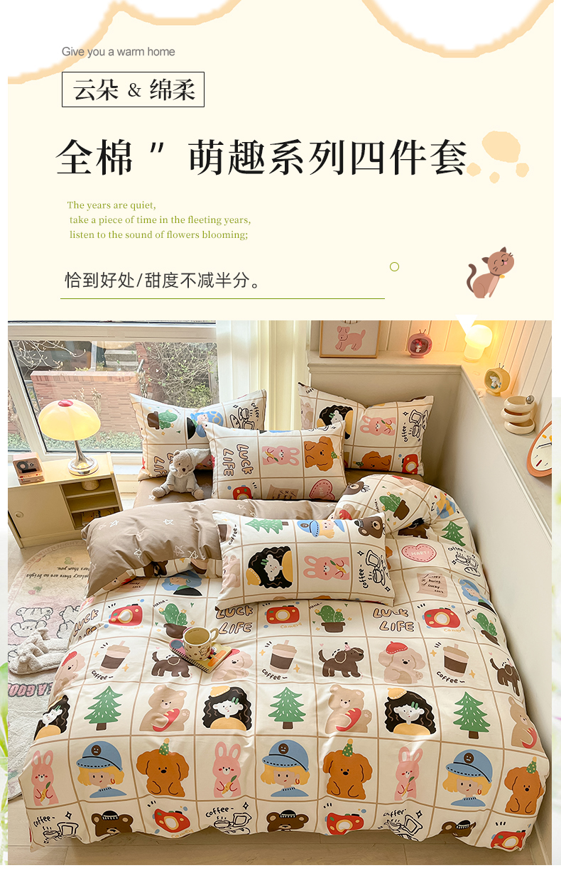 当前位置: 91家纺网 > 商品网购 > 床品套件 > 四件套 > 全棉普通四件套 > 捌月 2024新款全棉萌趣系列印花四件套单品 盼盼