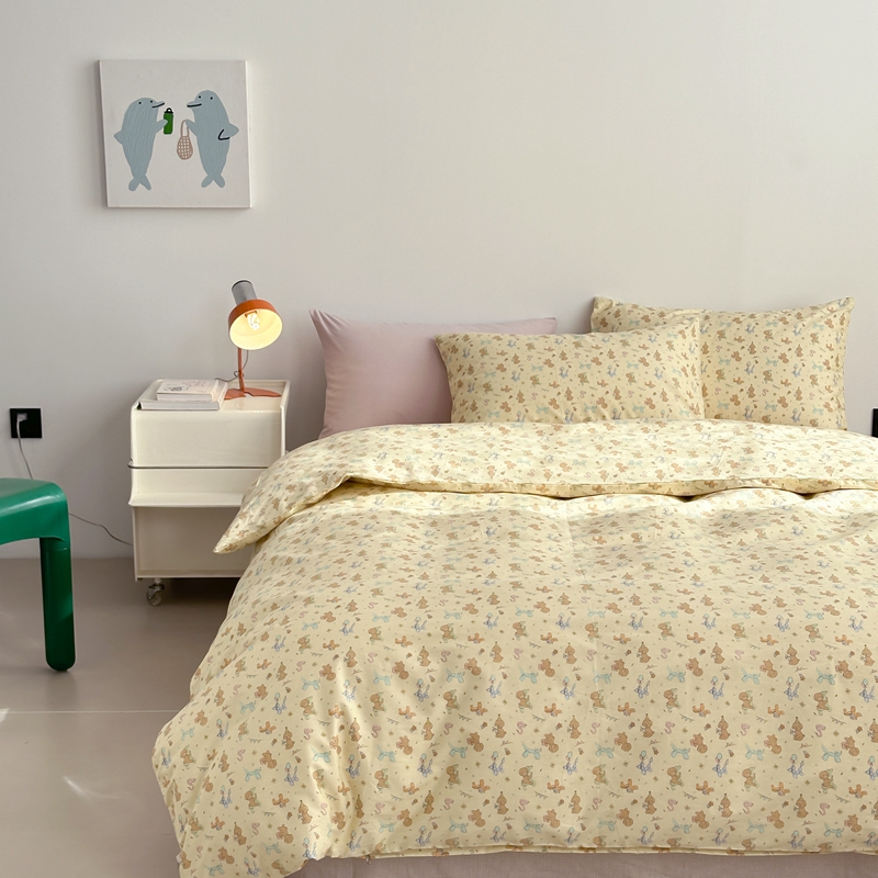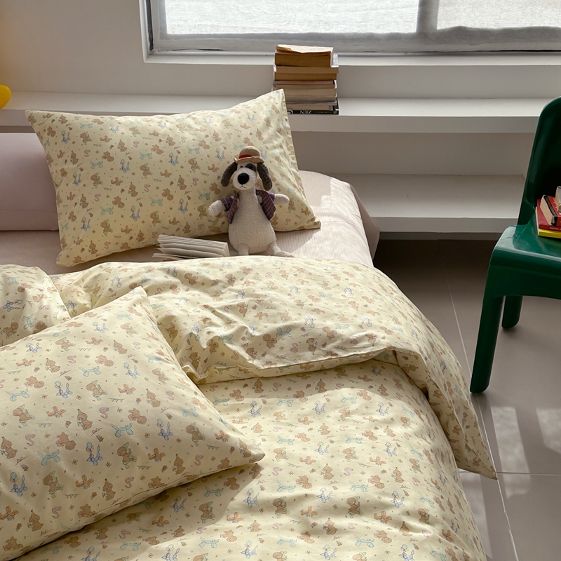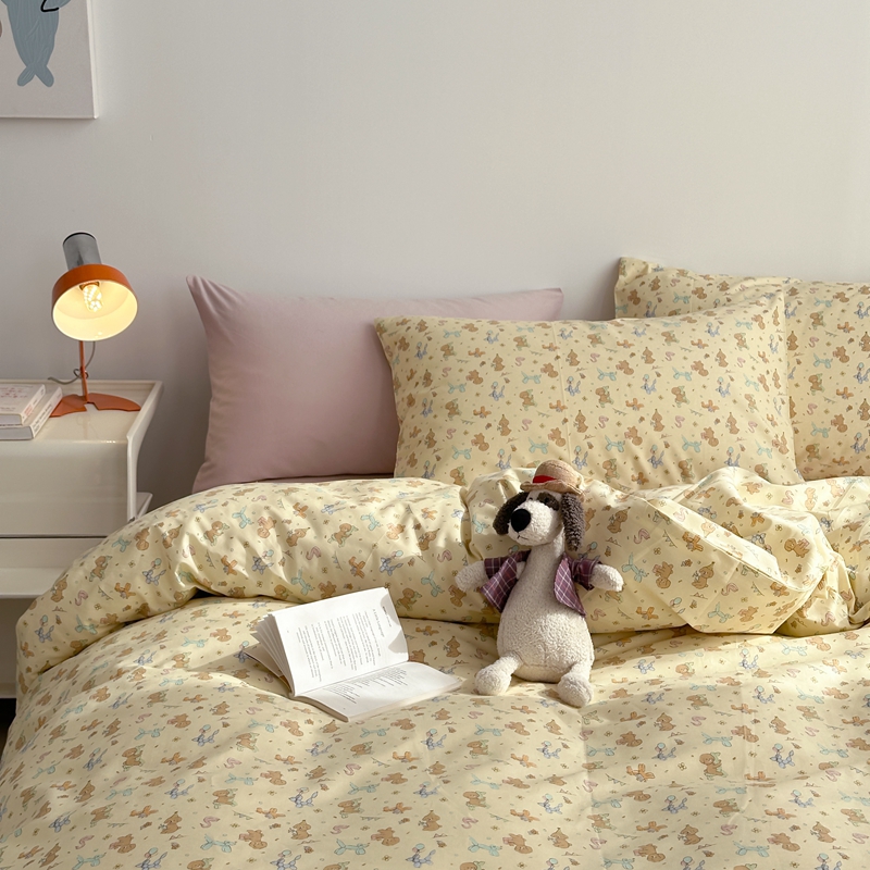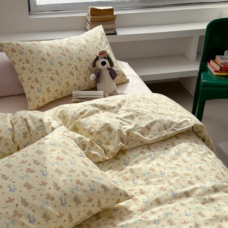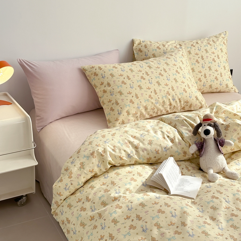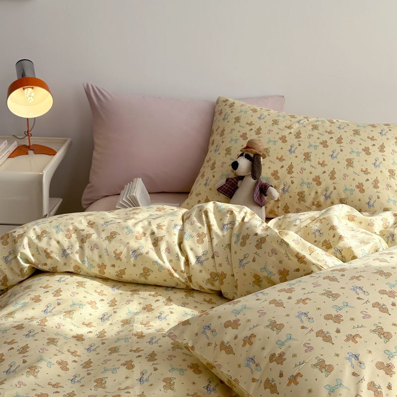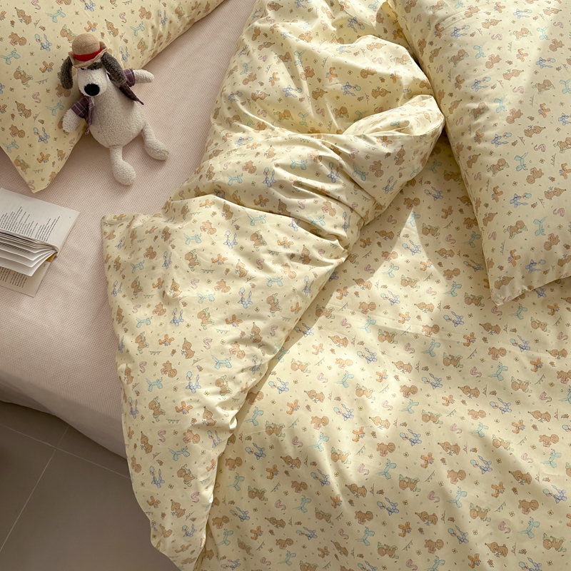 当前位置: 91家纺网 > 商品网购 > 床品套件 > 四件套 > 全棉普通四件套 > 棉眠 2024春季新款40支13070全棉卡通四件套 贵宾-黄