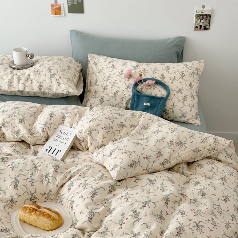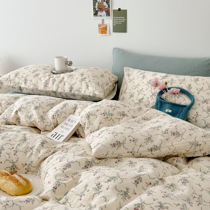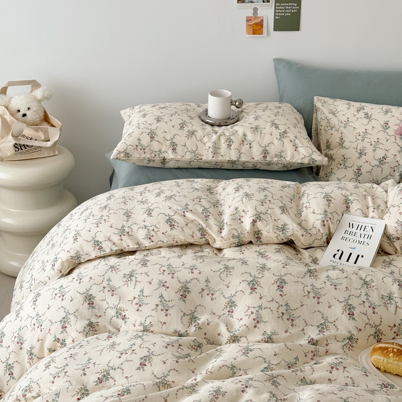 (总)安莱生活 2026年新品全棉纯棉小碎花刺绣花边款四件套-小碎花系列,花漾粉,花梦紫,凯特花园,漫语花,泡芙花园