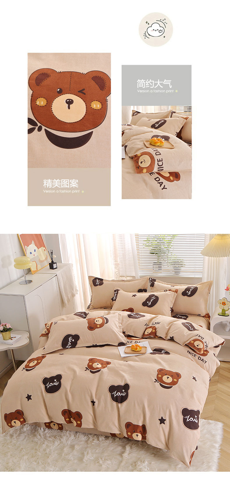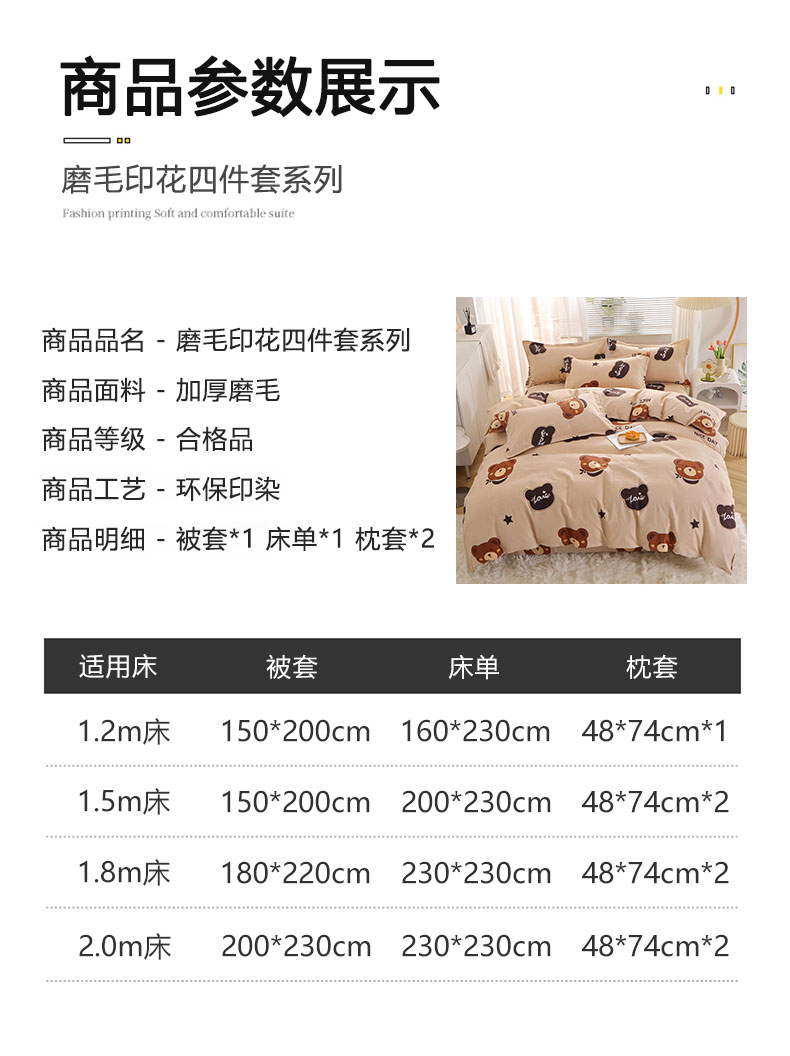 商品名称:北部居 2024新款加厚化纤四件套 小熊