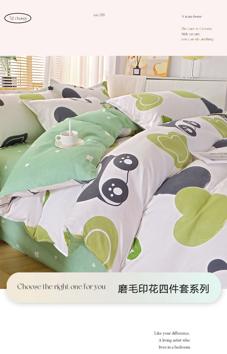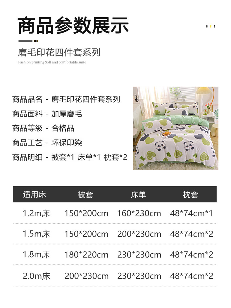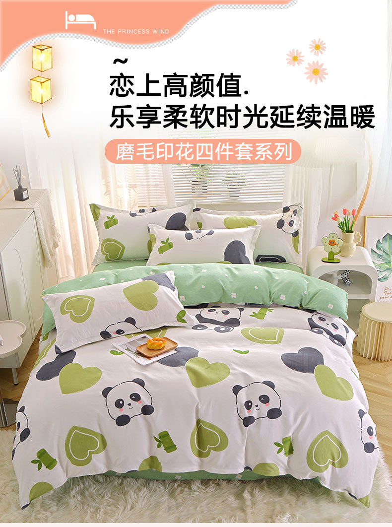 北部居 2024新款加厚化纤四件套 熊猫,熊猫