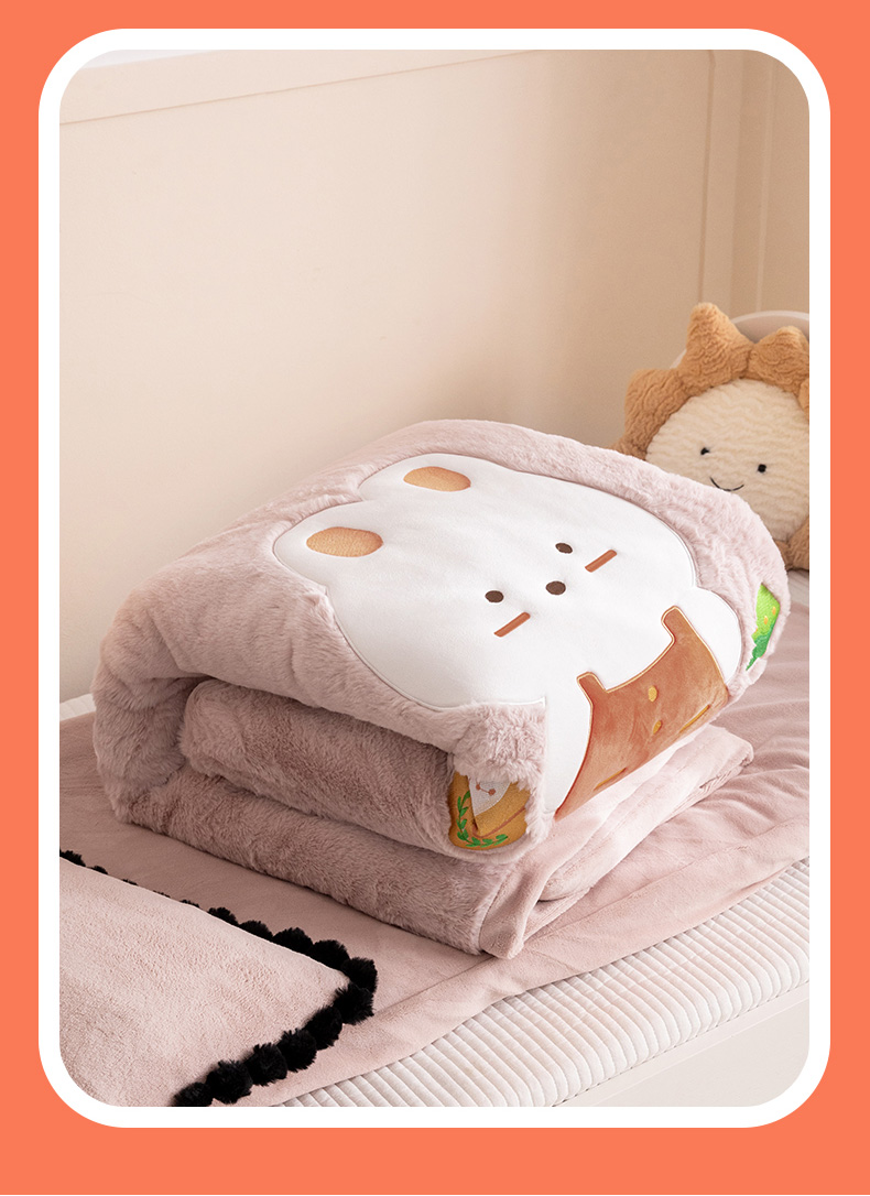 (总)喜多兔儿童家纺 2025春夏新款小软萌贴布绣纱布被,粉色软萌小兔,卡其色软萌小熊,蓝色软萌小象,绿色软萌恐龙,组合图仅供展示