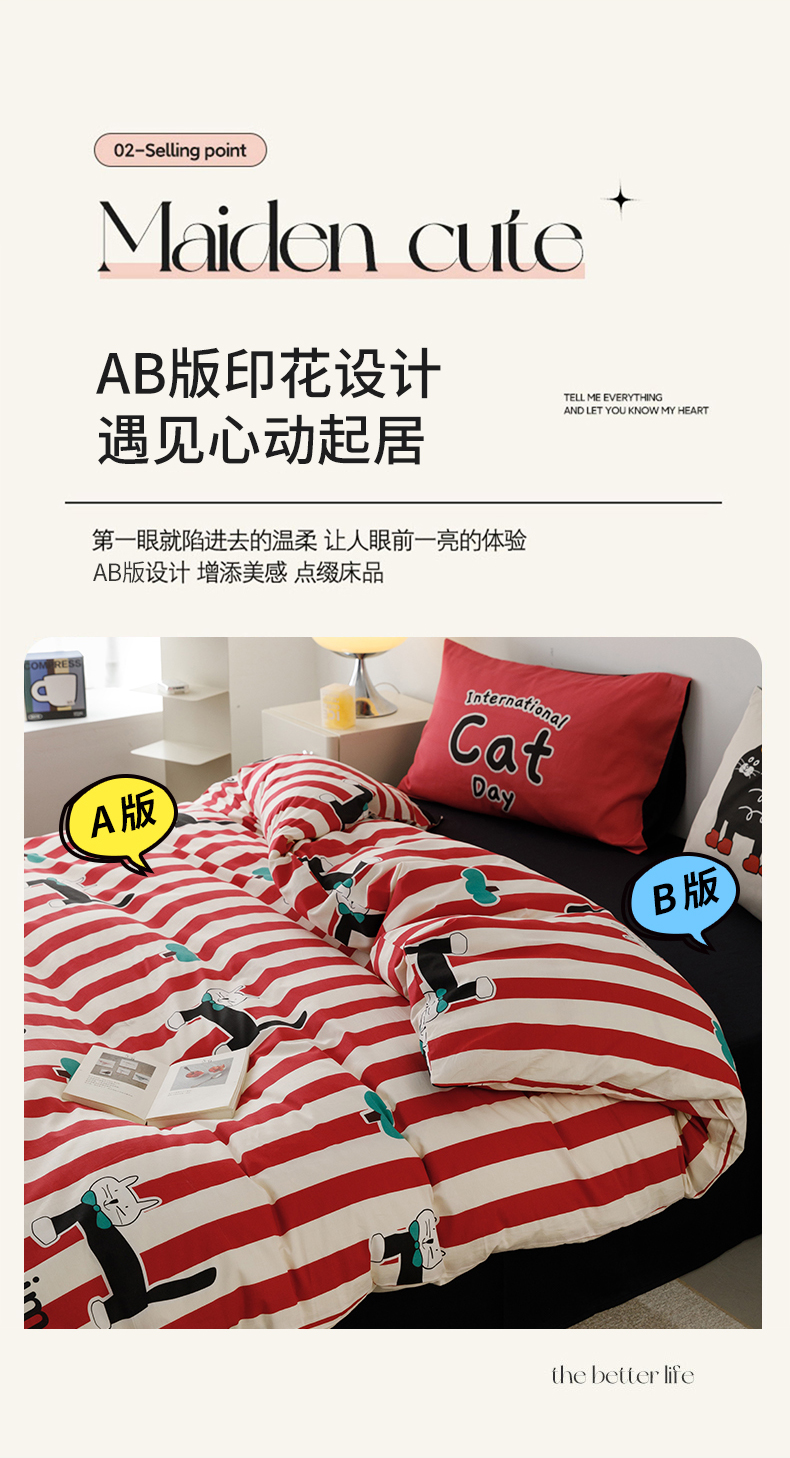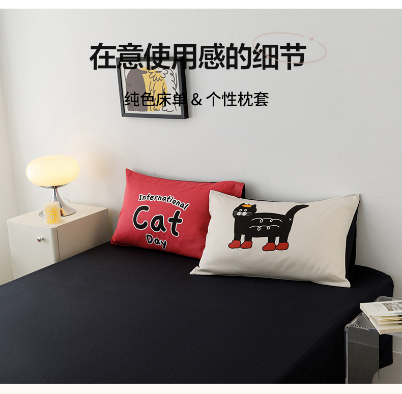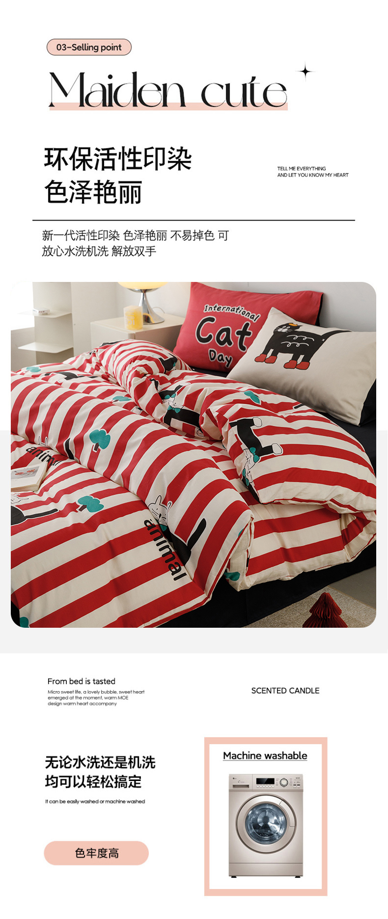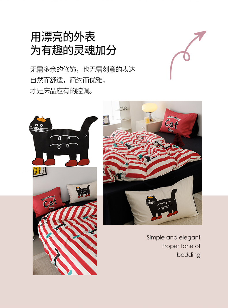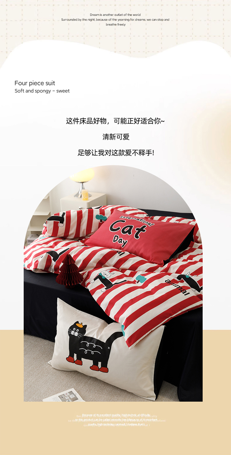 珺柔家纺 2024年款13070全棉数码印花四件套 红白领结猫