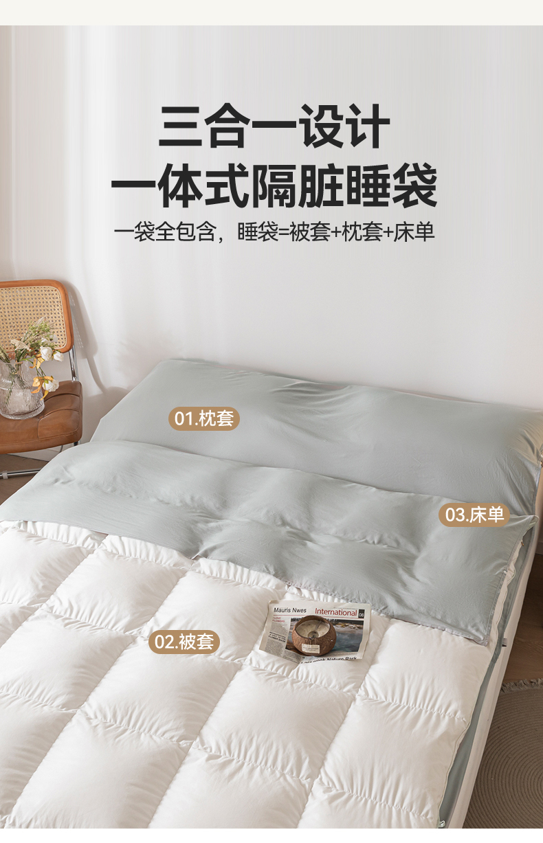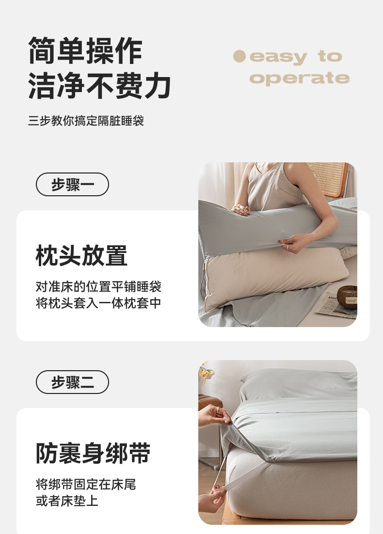 商品名称:古吉梦 2024新款水洗棉隔脏睡袋 山灰