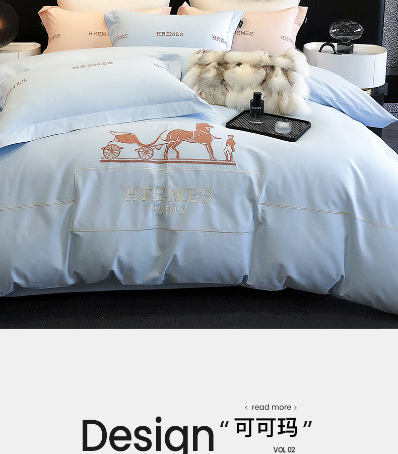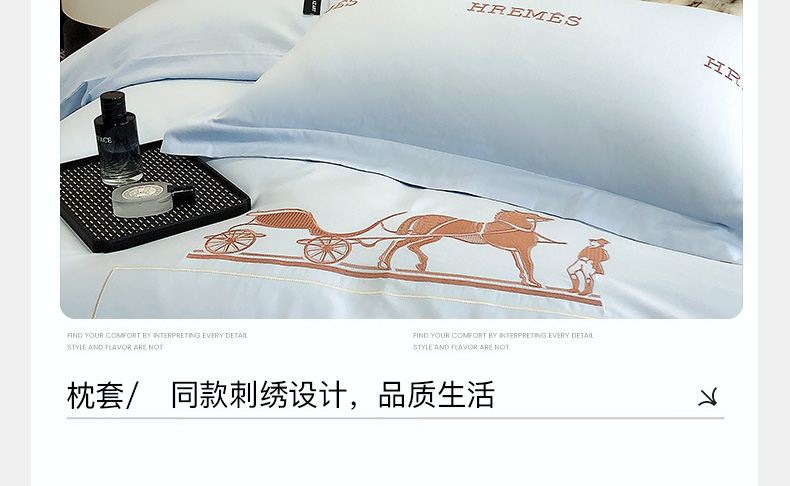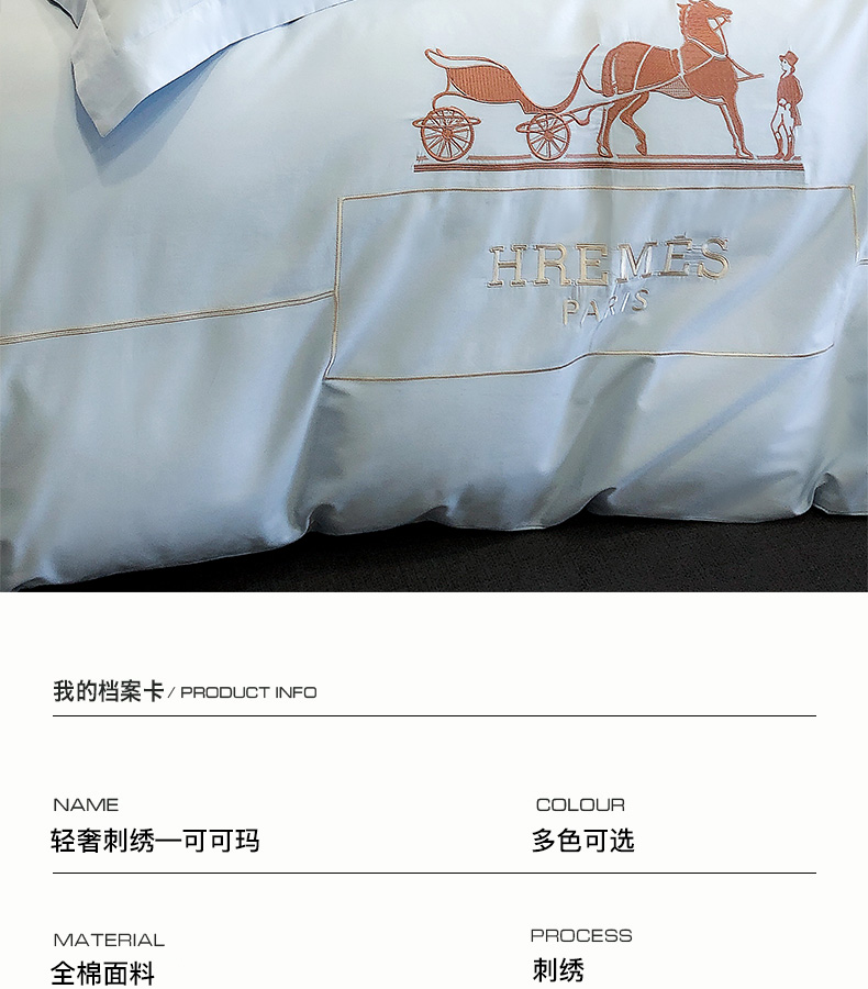商品名称:卡姿家纺 2024新款春夏轻奢全棉简约款四件套-可可玛 可可玛蓝