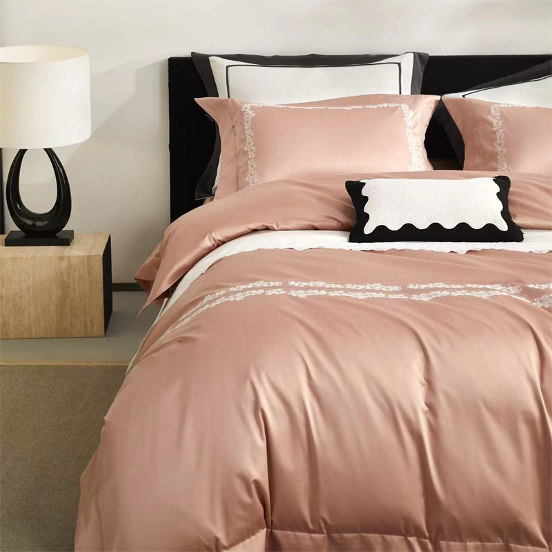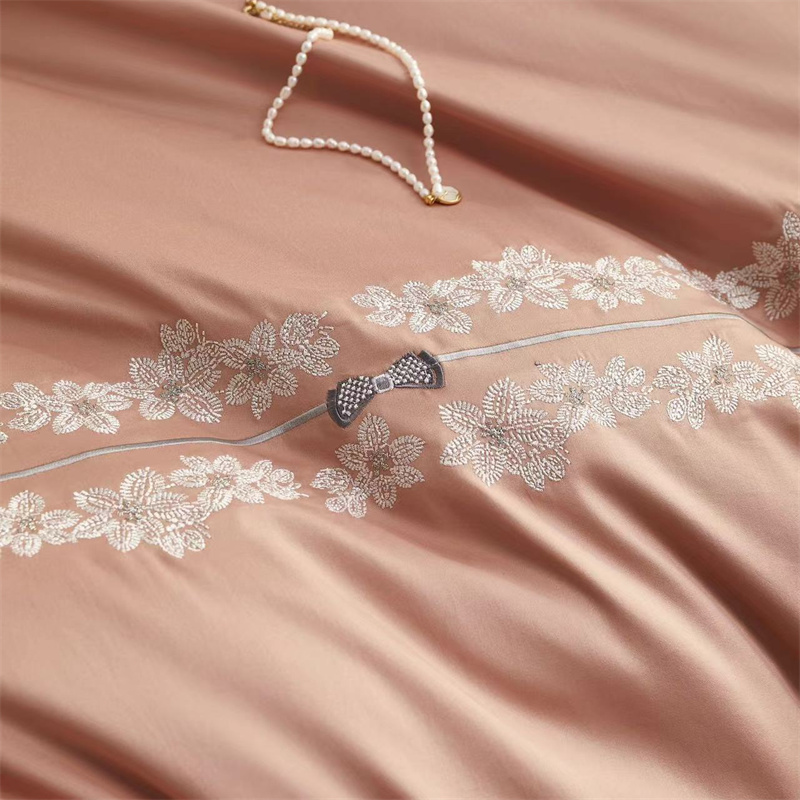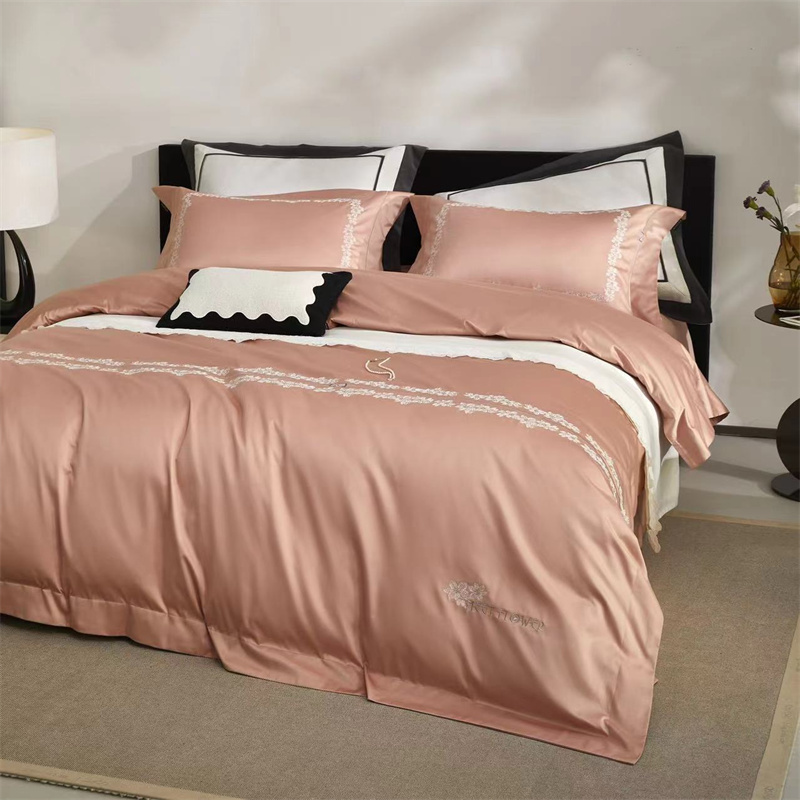 (总)玖玖爱家纺 2023新款120支贡缎长绒棉刺绣梦柔系列四件套,梦柔-香槟金,梦柔-香橙桔,梦柔-高级灰,梦柔-水蓝,梦柔-芙蓉玉