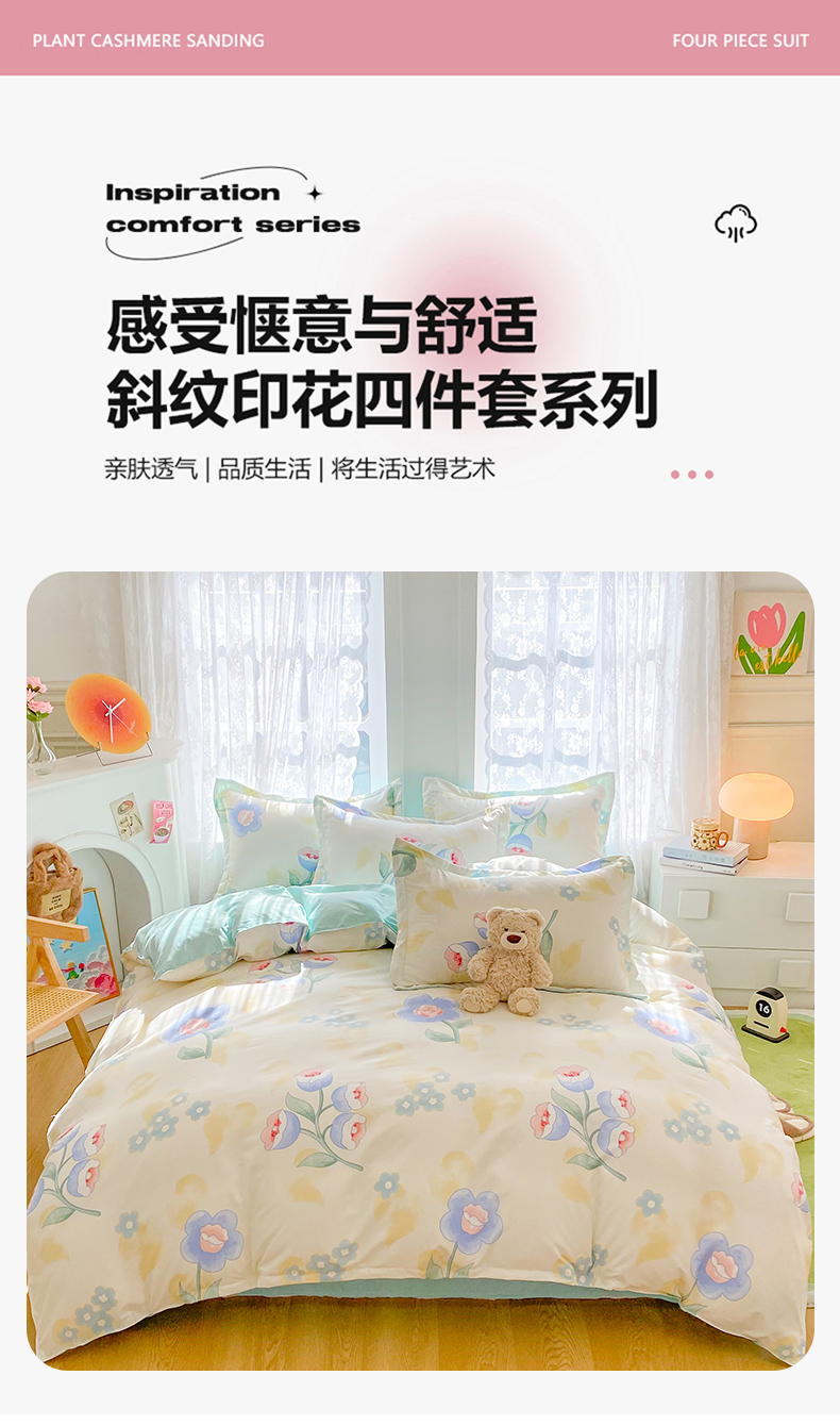 当前位置: 91家纺网 > 商品网购 > 床品套件 > 四件套 > 化纤普通四件套 > 简冠家纺 2023直播爆款北欧风亲肤植物羊绒磨毛四件套 锦绣园