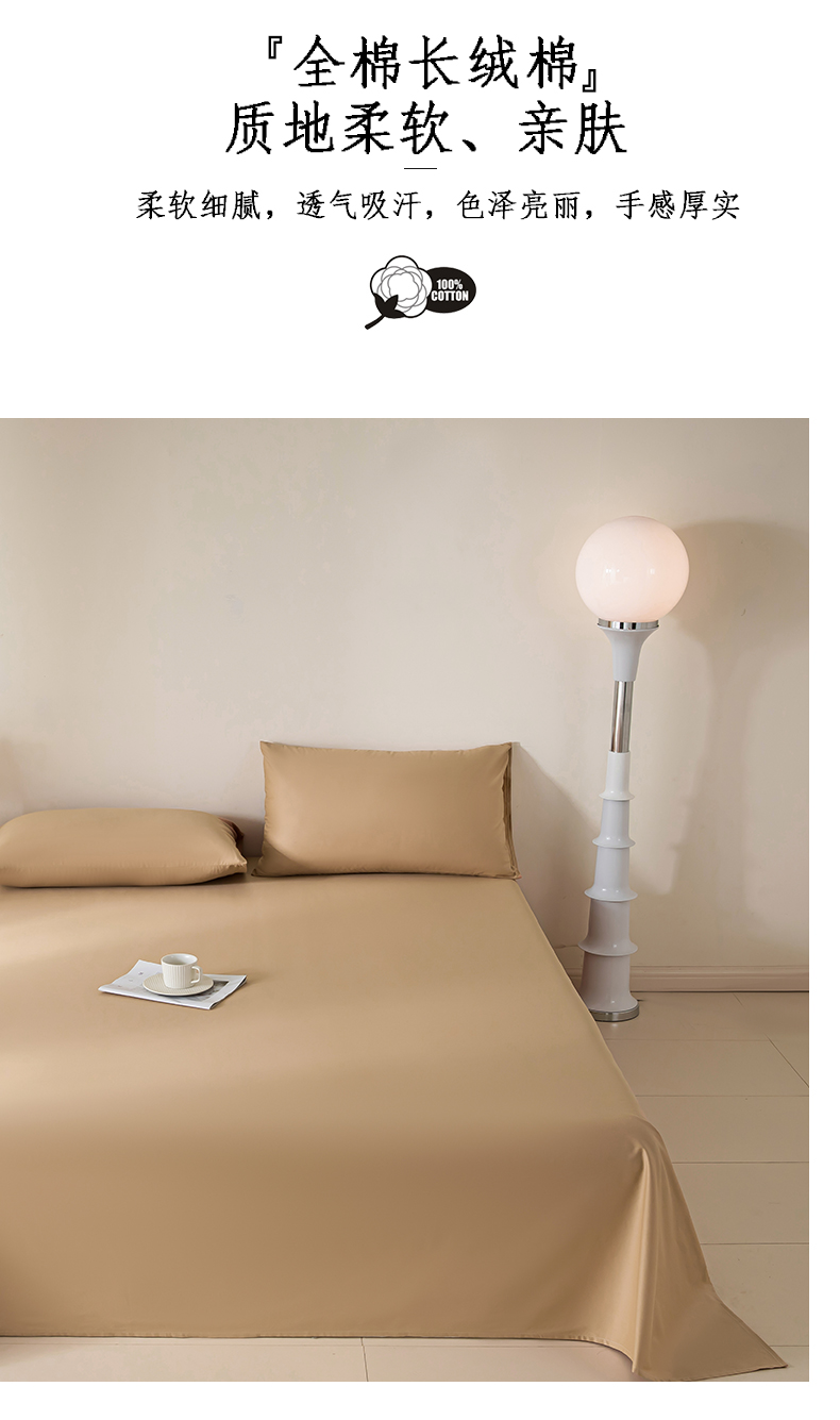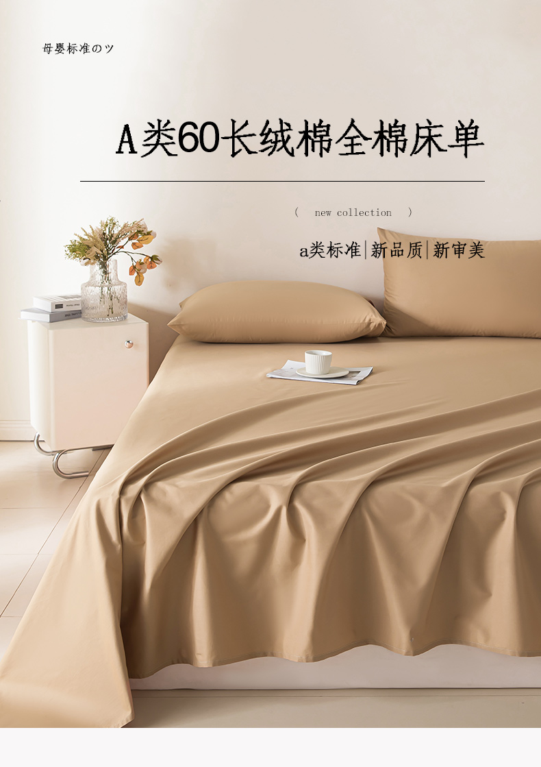 卧趣家纺 2024新品A类全棉长绒棉单品床单 茶棕