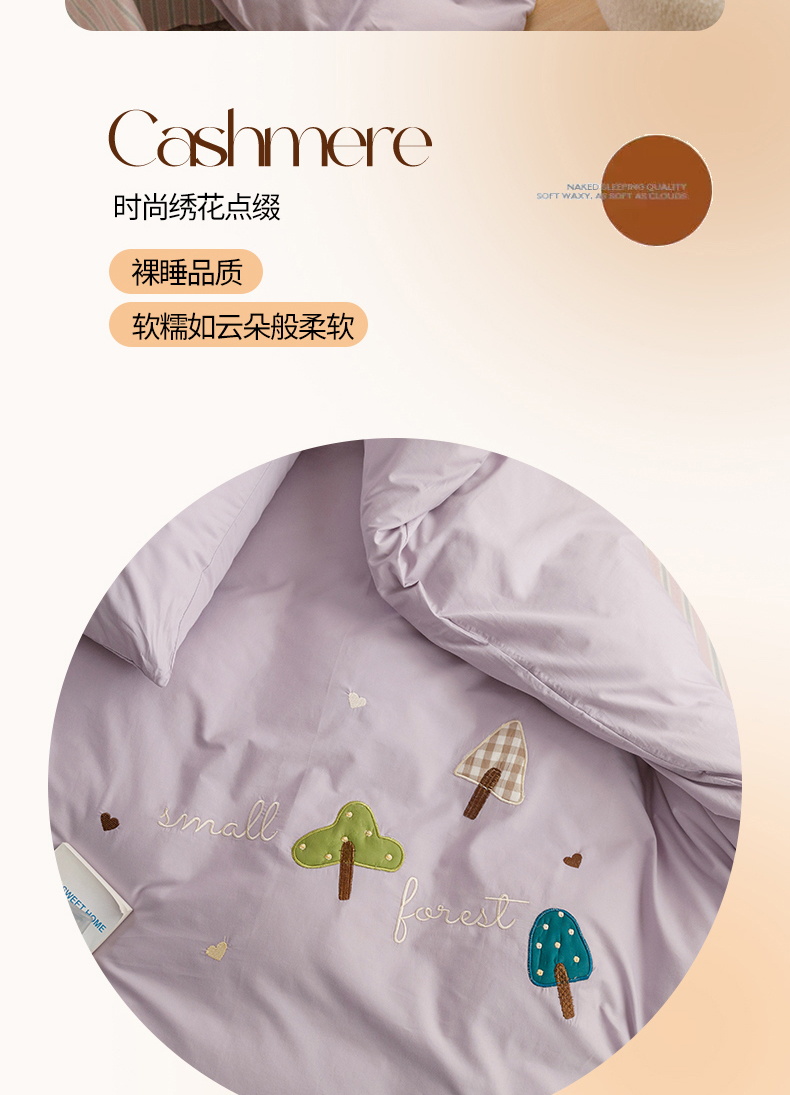 (总)艾莱家纺 2025新款A类新疆长绒棉纯棉加厚柔顺磨毛贴布绣四件套-奶芙,奶芙-锦绣绿,奶芙-大麦灰,奶芙-可可蛋奶,奶芙-悠兰,奶芙-紫粉