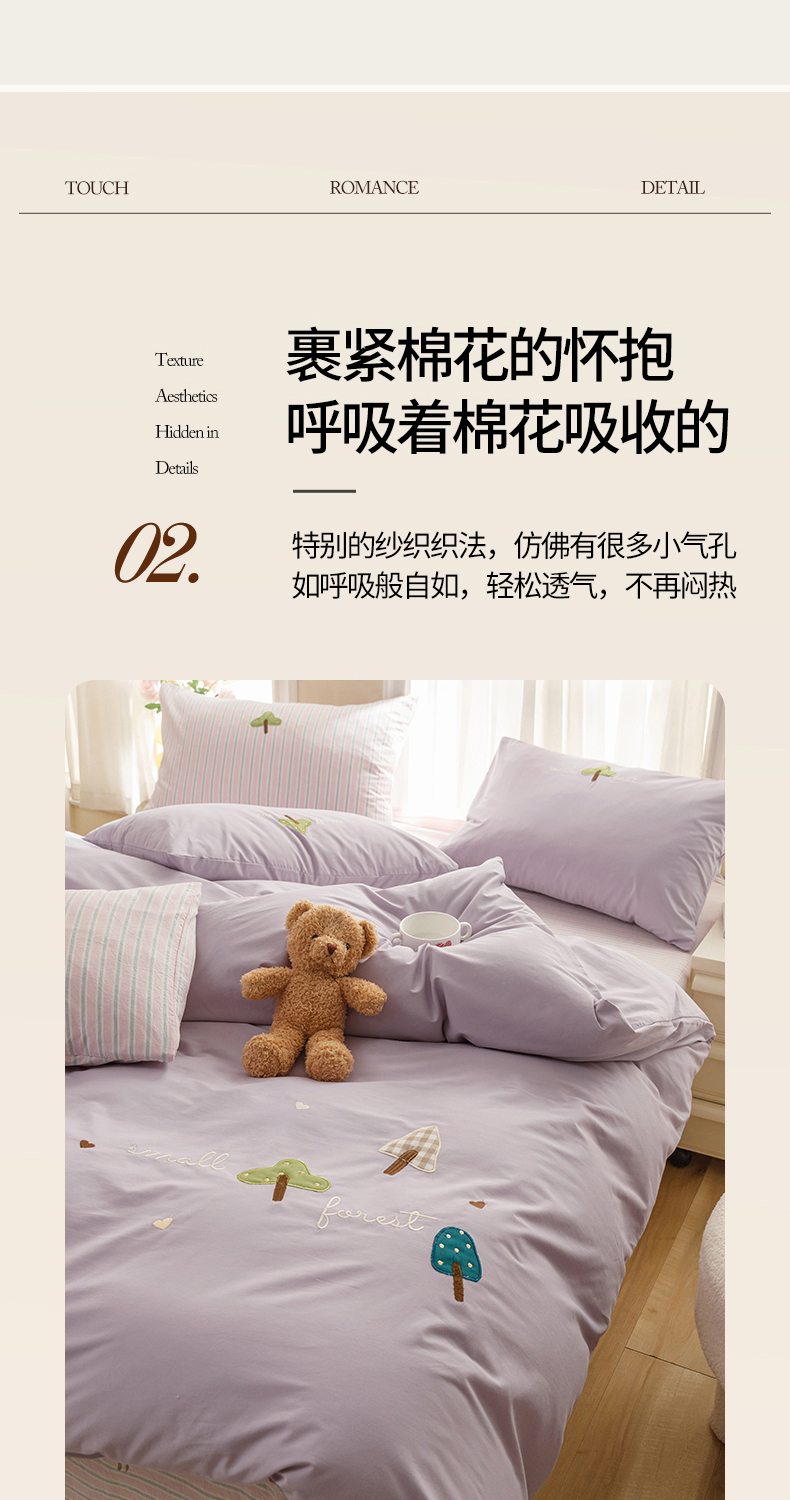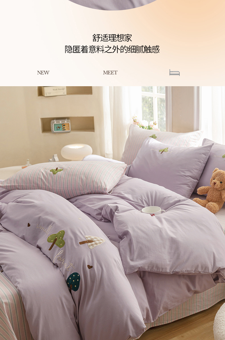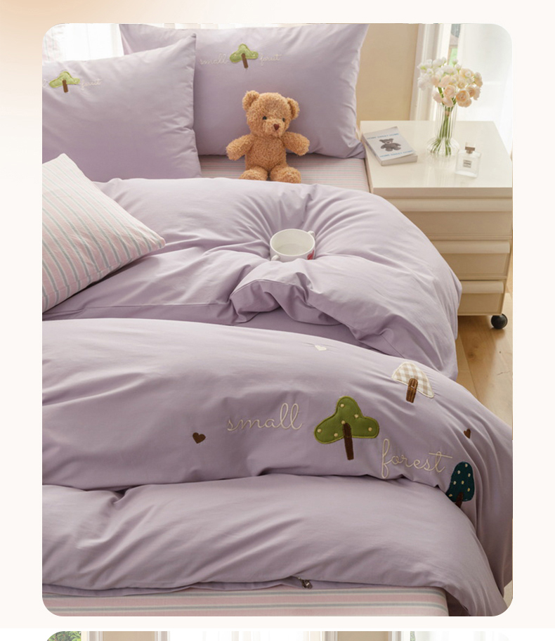 艾莱家纺 2024新款水洗棉加厚绣花四件套-眷恋 眷恋-丁香紫