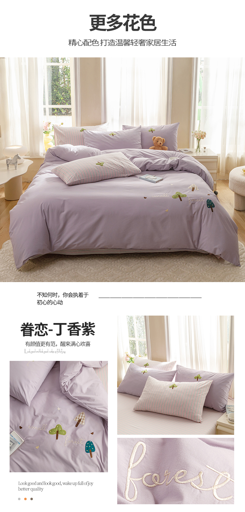 商品名称:艾莱家纺 2024新款水洗棉加厚绣花四件套-眷恋 眷恋-丁香紫