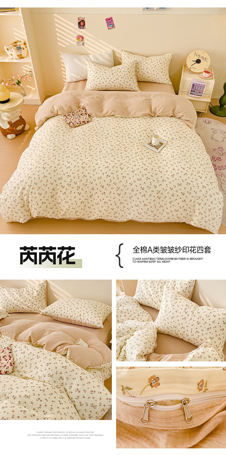 商品名称:木楌 2025新款全棉A类皱皱纱印花四件套 芮芮花