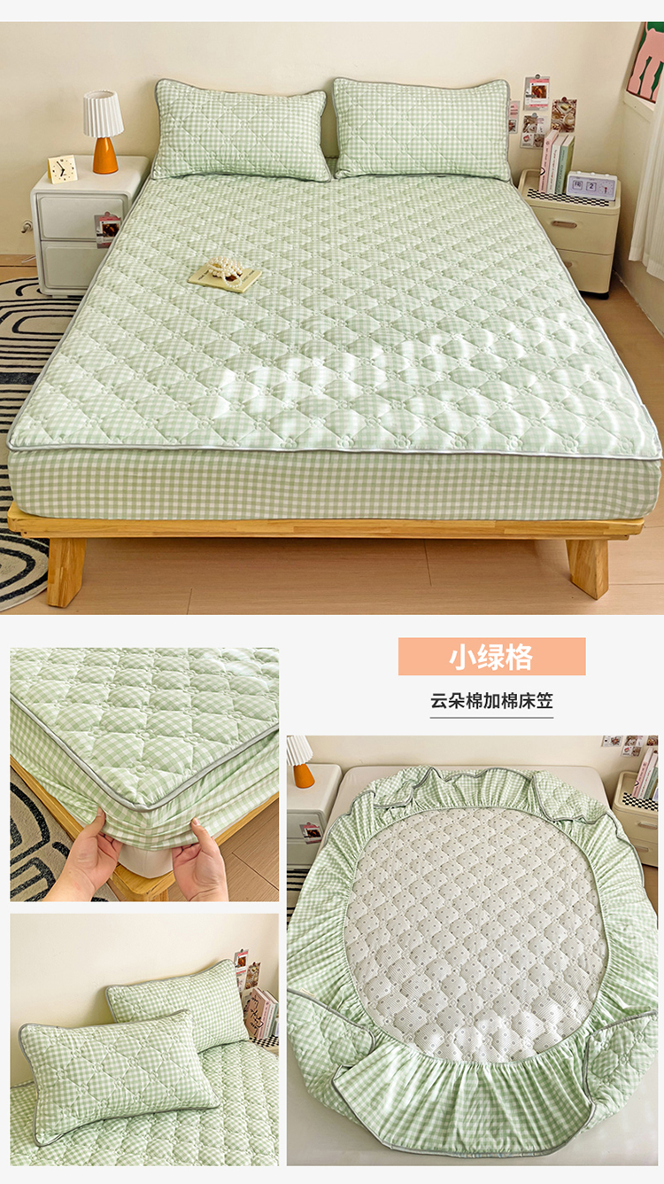 商品名称:纽缦家纺 2024云朵棉亲肤加厚加棉床笠 小绿格