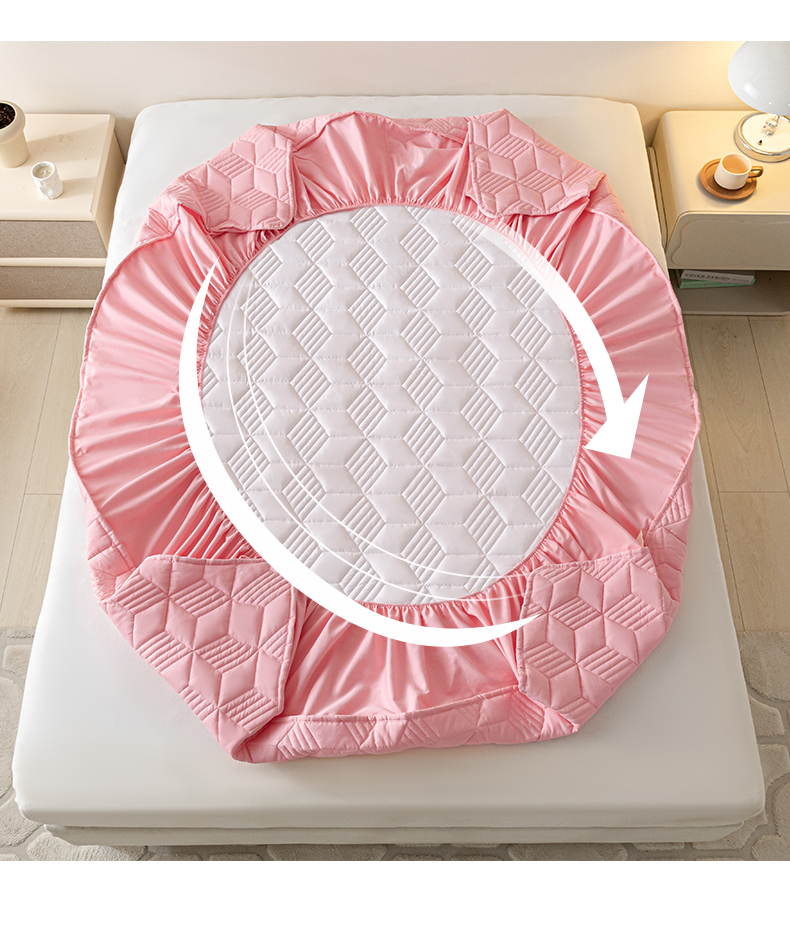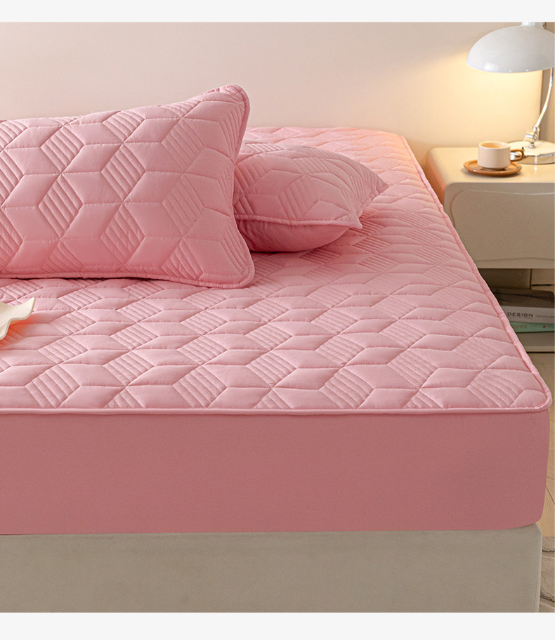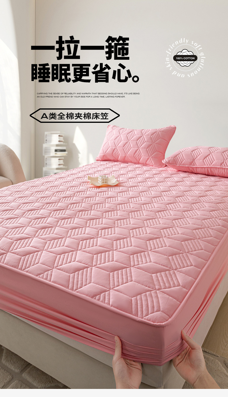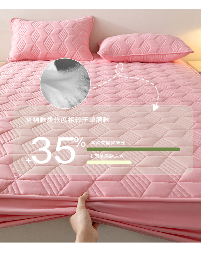 其奥 2025新款高密全棉夹棉床笠三件套 粉色(床笠款)