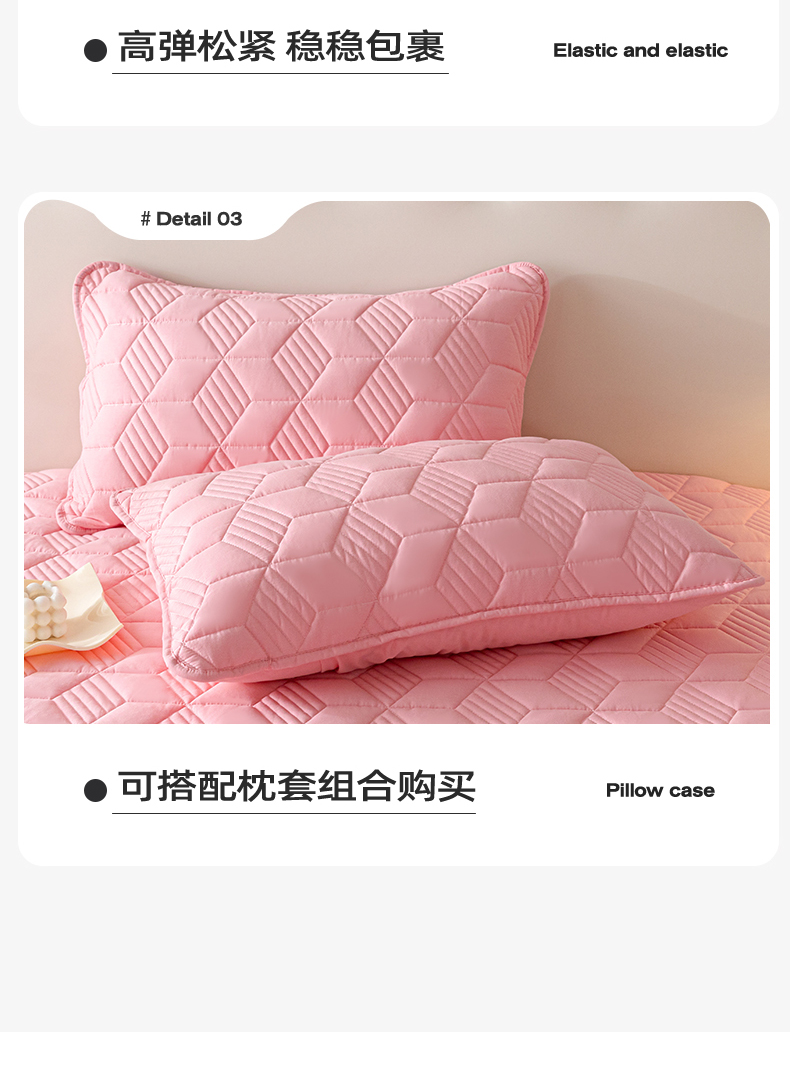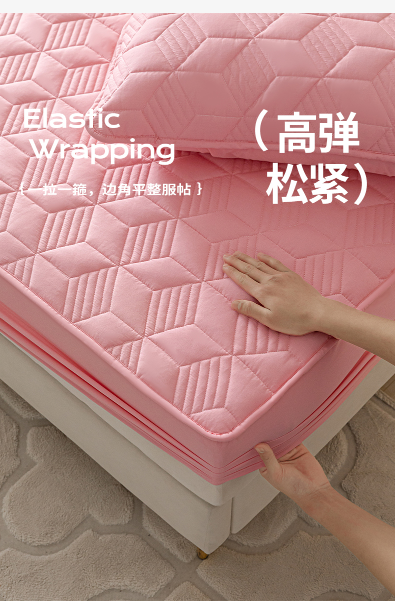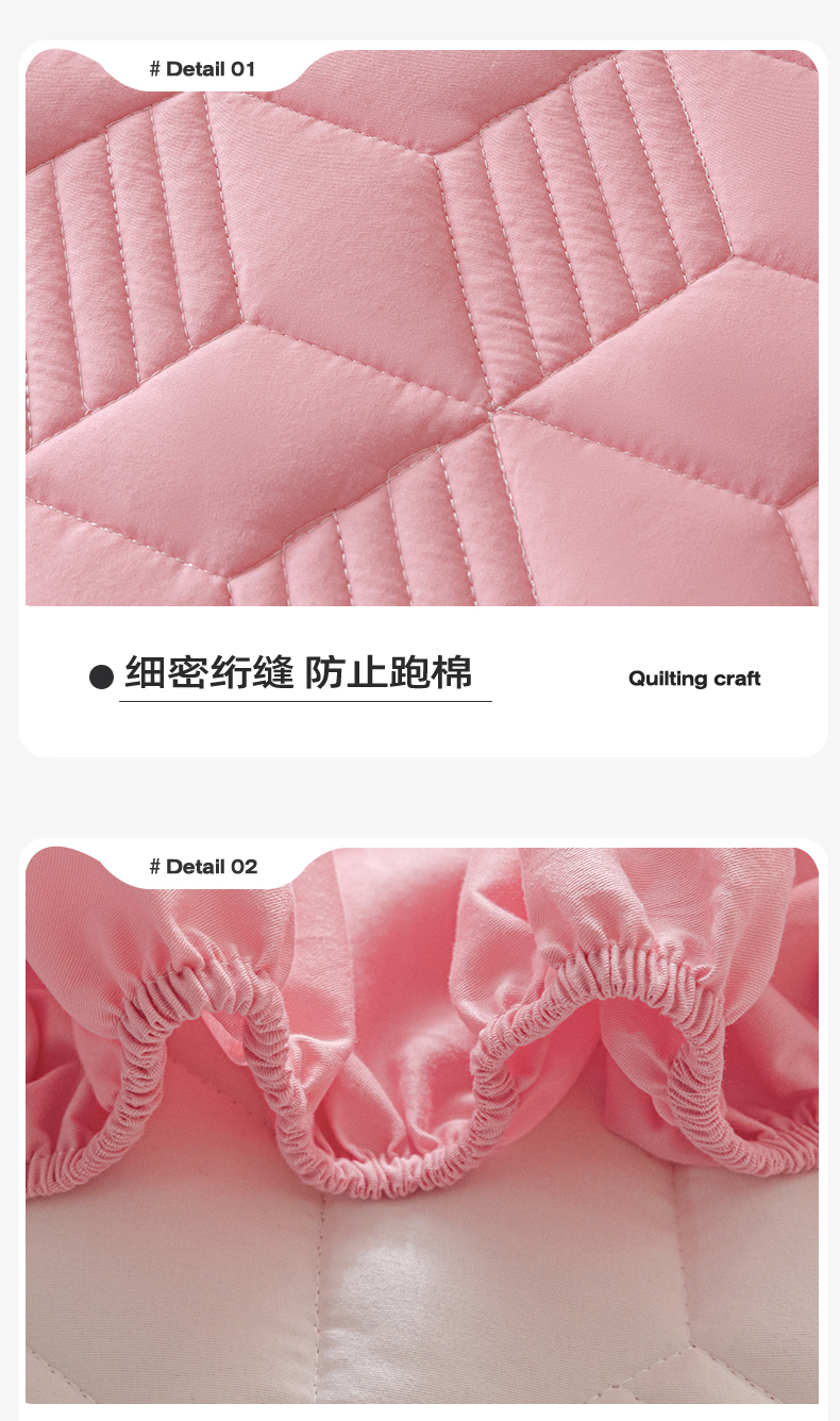 商品名称:其奥 2025新款高密全棉夹棉床笠三件套 粉色(床笠款)