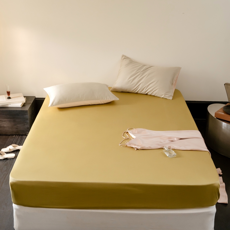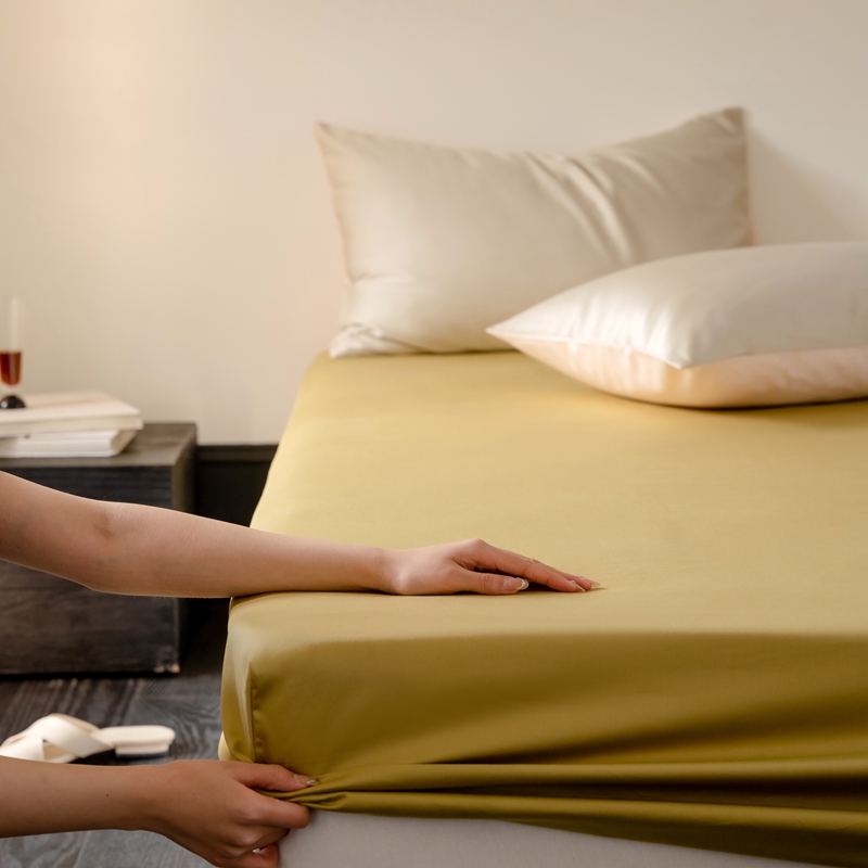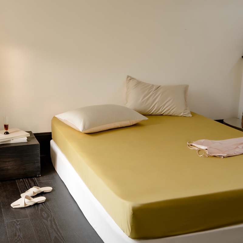 鹿班家居 2024新款100S长绒棉纯色单品床笠(场景一) 月荣黄