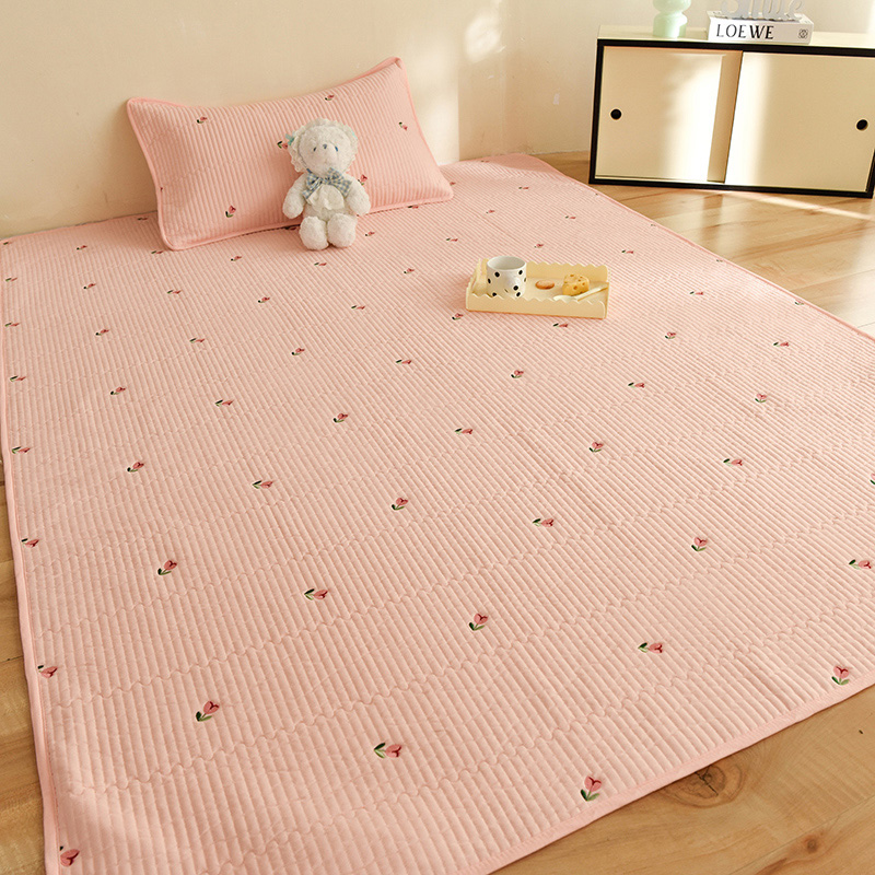 商品名称:美达家纺2025新品纯色刺绣水洗棉夹棉地垫 清新花语-粉
