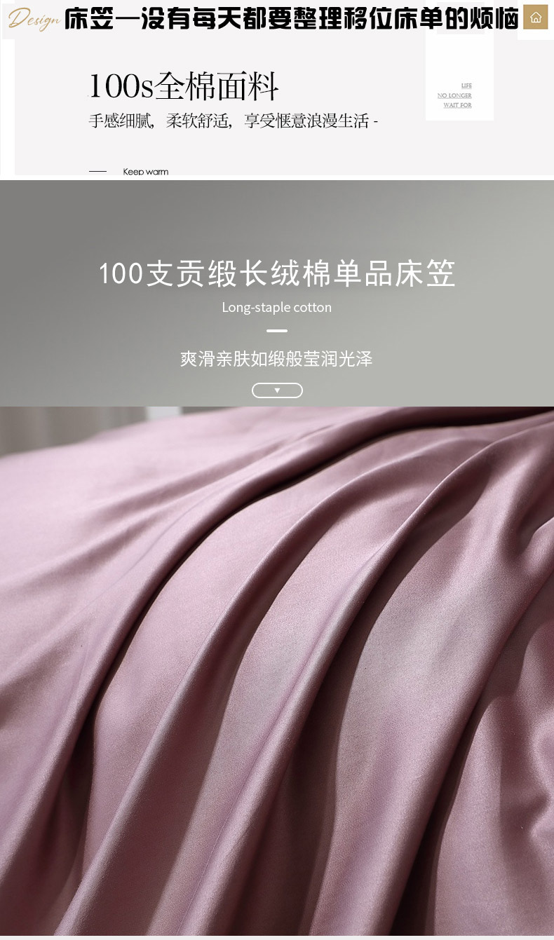 • 91家纺网 家纺一手货源 找家纺 晶缦家纺 2024新款100S全棉贡缎长绒棉纯色四件套和单品-纯沐系列 单床笠 纯沐-帛咖色