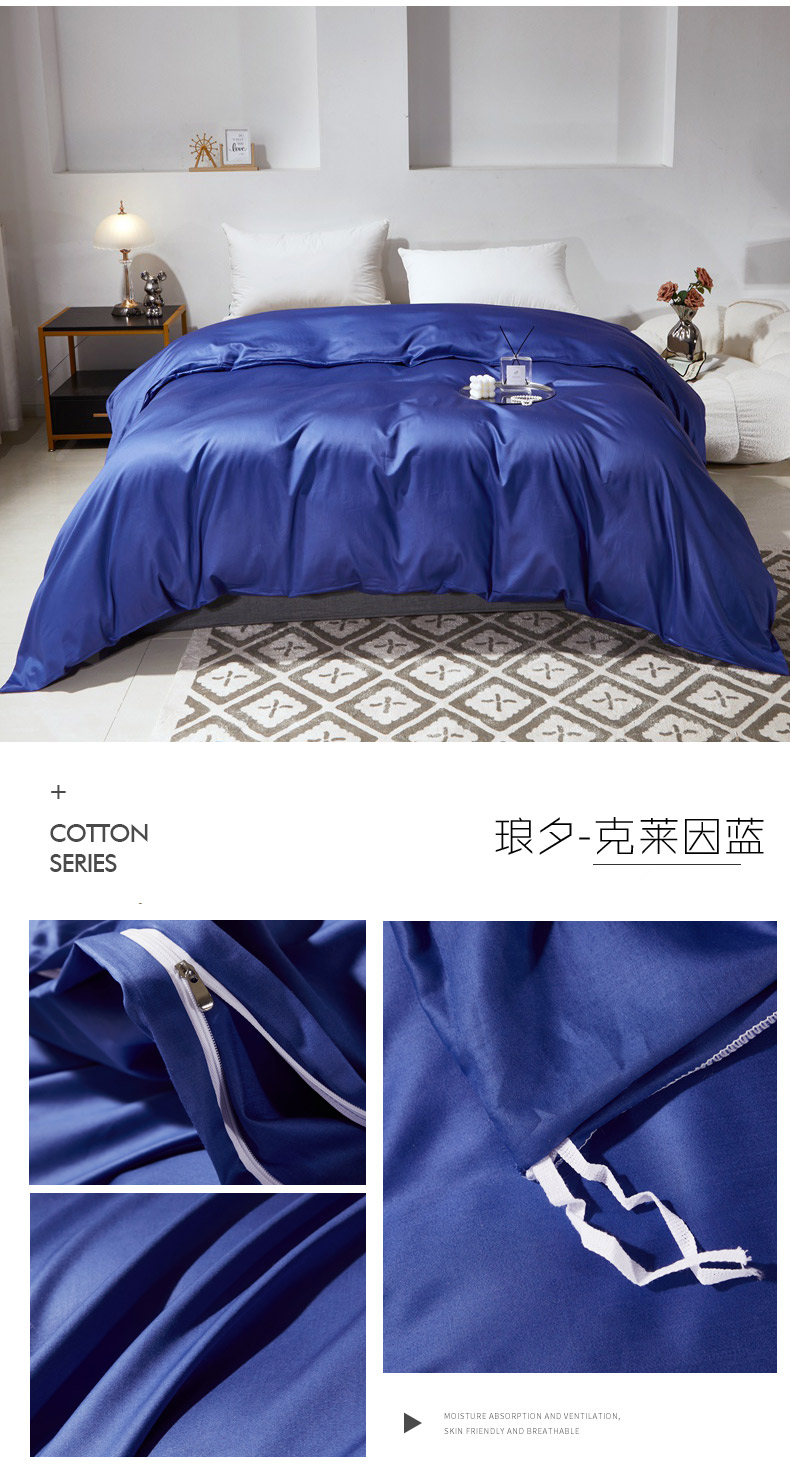 晶缦家纺 2024新款全棉60支贡缎长绒棉纯色多规格四件套和单品-琅夕系列 单被套 琅夕-克莱因蓝
