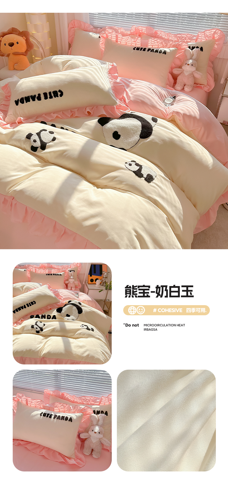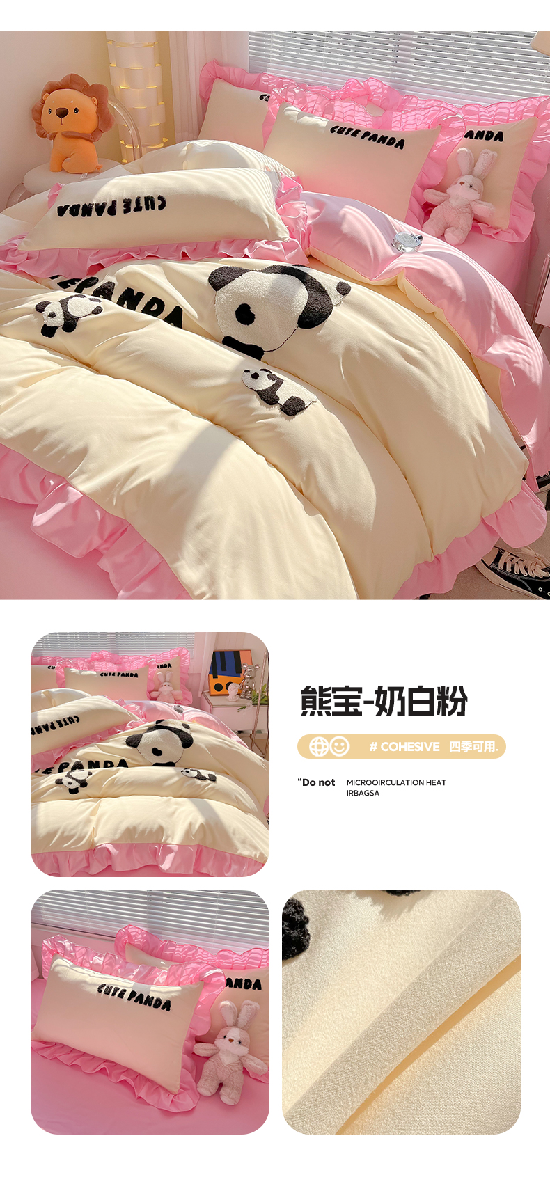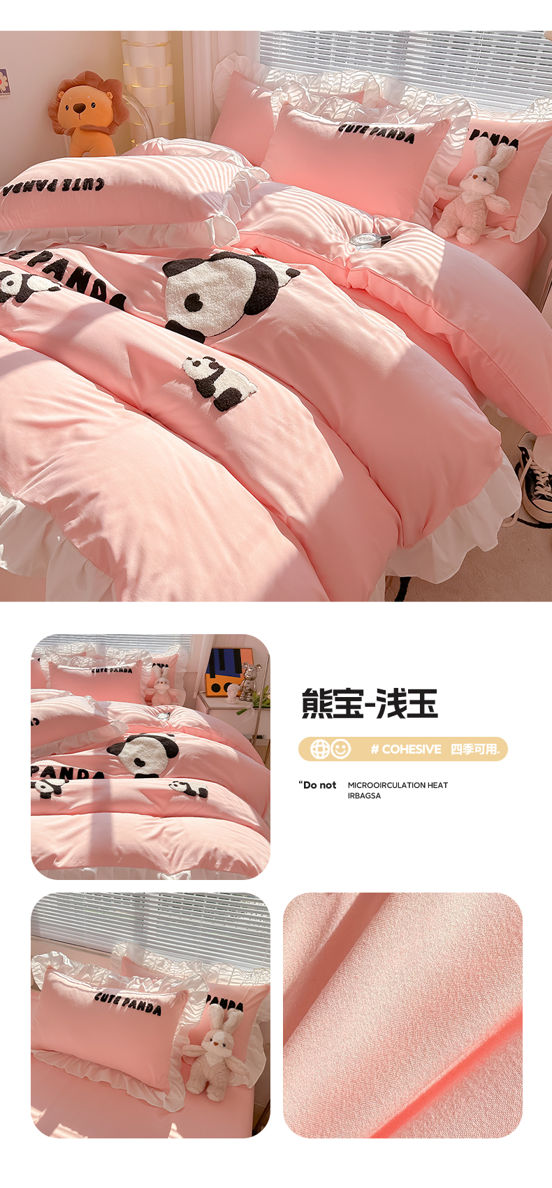 (总)韩都家居 2025新款牛奶绒毛巾绣四件套-系列一,熊猫懒懒,蛋糕猫-粉格,蛋糕猫-兰格,欢乐狗,腊肠狗,圣诞树,小白鸭